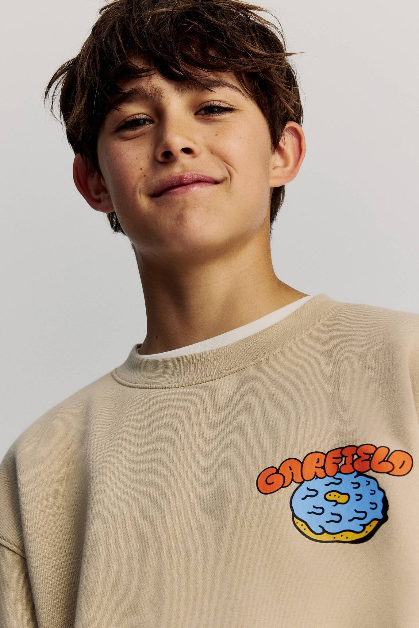 Толстовка с мягкой флисовой подкладкой. Свободный крой, круглая горловина с ребристым краем, спущенная линия плеча, длинные рукава и ребристые манжеты и нижний край.