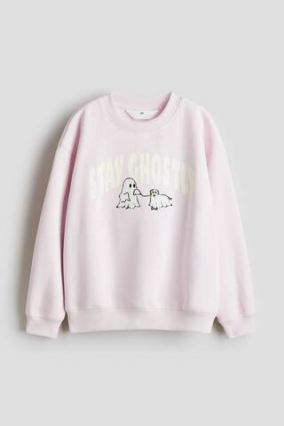 Толстовка из хлопкового трикотажного полотна с декоративным мотивом спереди. Свободный круглый вырез горловины с ребристым краем, спущенная линия плеча и длинные рукава. Манжеты и низ выполнены в рубчик.