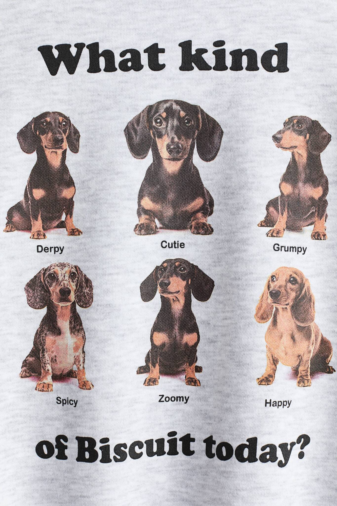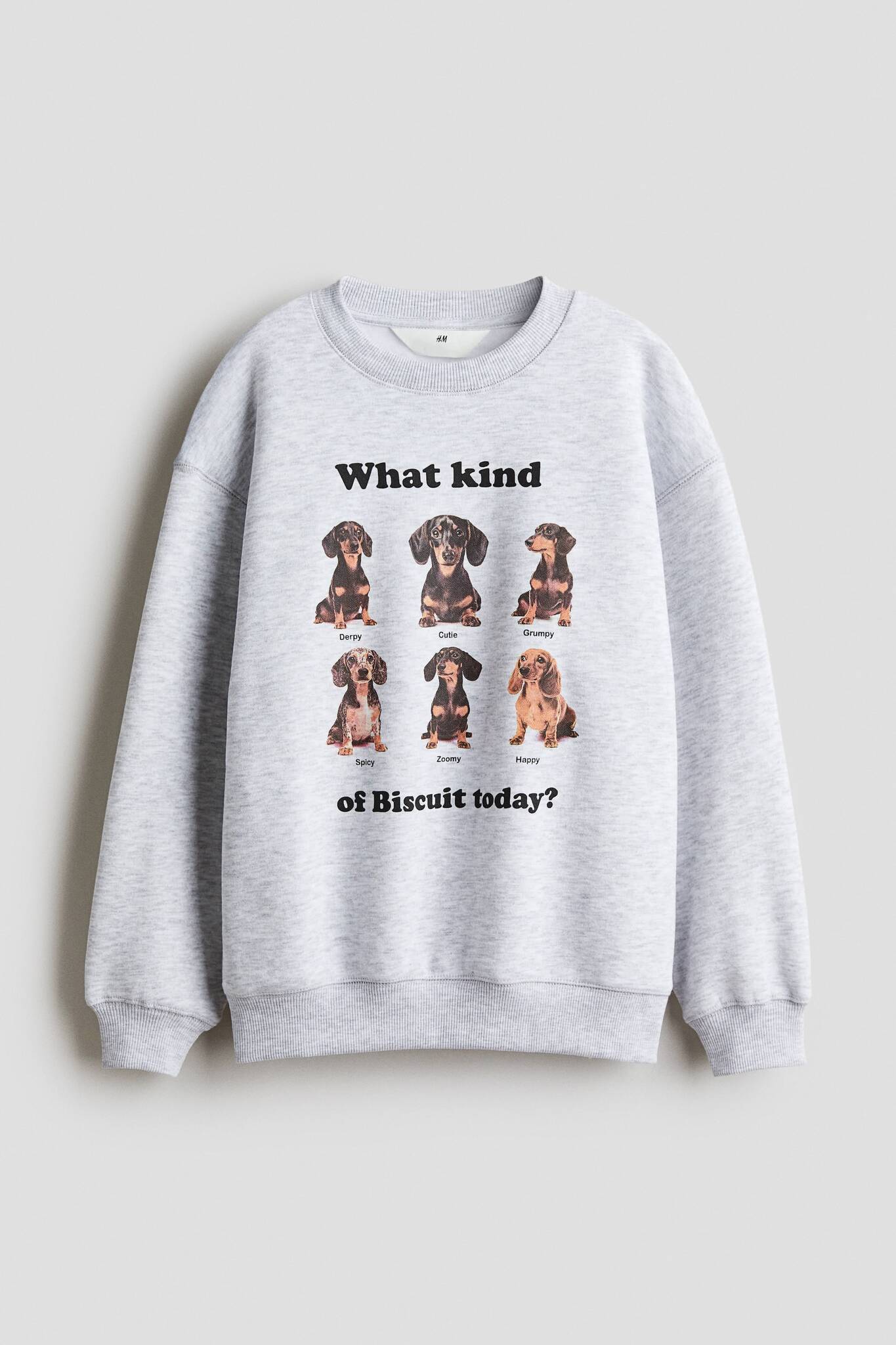 Толстовка из хлопкового трикотажного полотна с декоративным мотивом спереди. Свободный круглый вырез горловины с ребристым краем, спущенная линия плеча и длинные рукава. Манжеты и низ выполнены в рубчик.