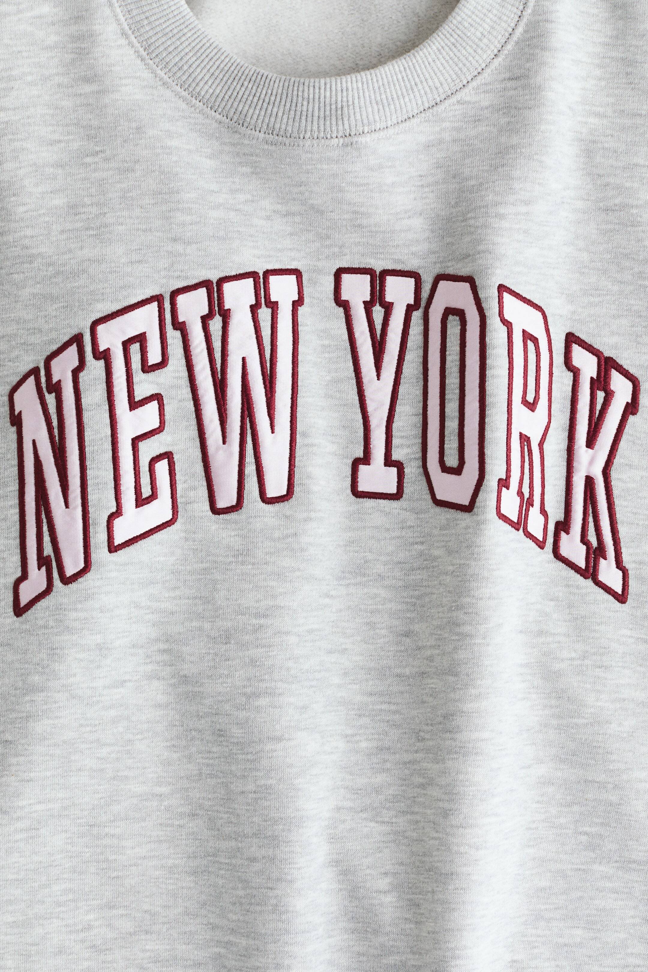 Толстовка из хлопкового трикотажного полотна с декоративным мотивом спереди. Свободный круглый вырез горловины с ребристым краем, спущенная линия плеча и длинные рукава. Манжеты и низ выполнены в рубчик.