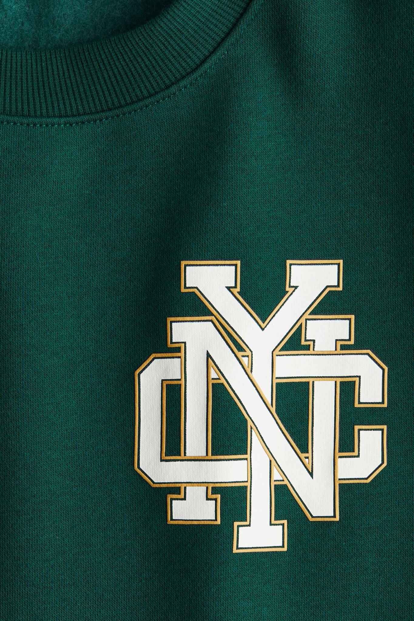 Толстовка на флисовой подкладке с набивным рисунком. Круглый вырез горловины с резинкой, спущенная линия плеча и длинные рукава. Манжеты и низ – резинкой.