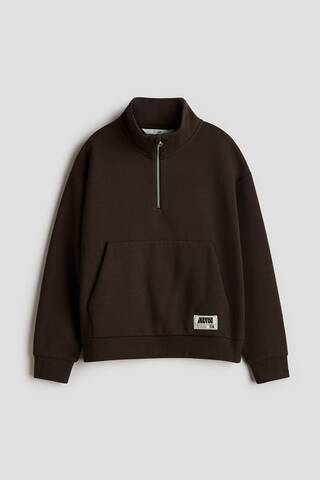 H&M Толстовка с застежкой-молнией на половину длины, темно-коричневый