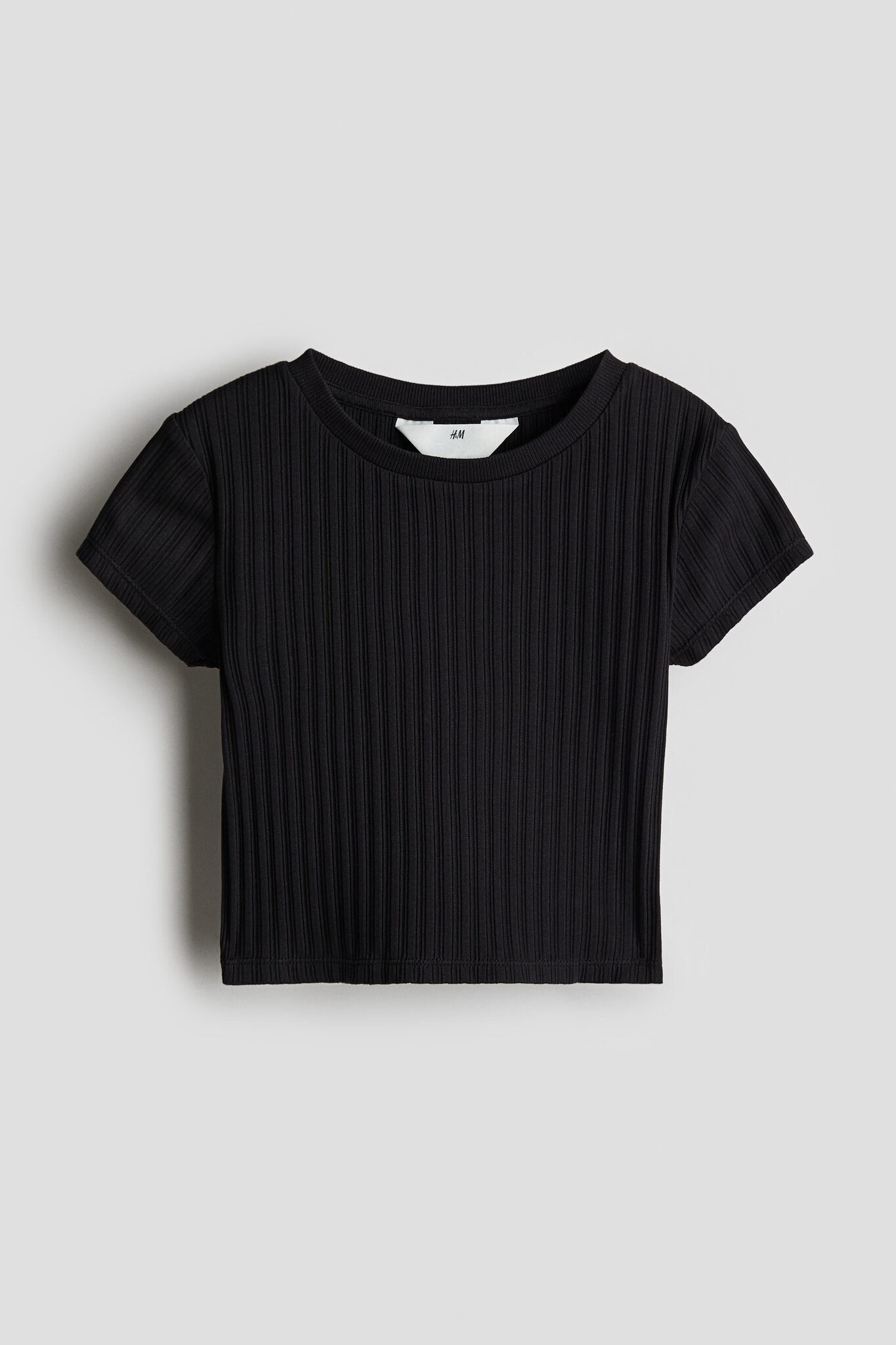 Топ с короткими рукавами из мягкого хлопкового трикотажа в рубчик, с круглым вырезом и ребристой отделкой.