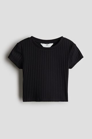 H&M Топ из хлопка в рубчик, черный
