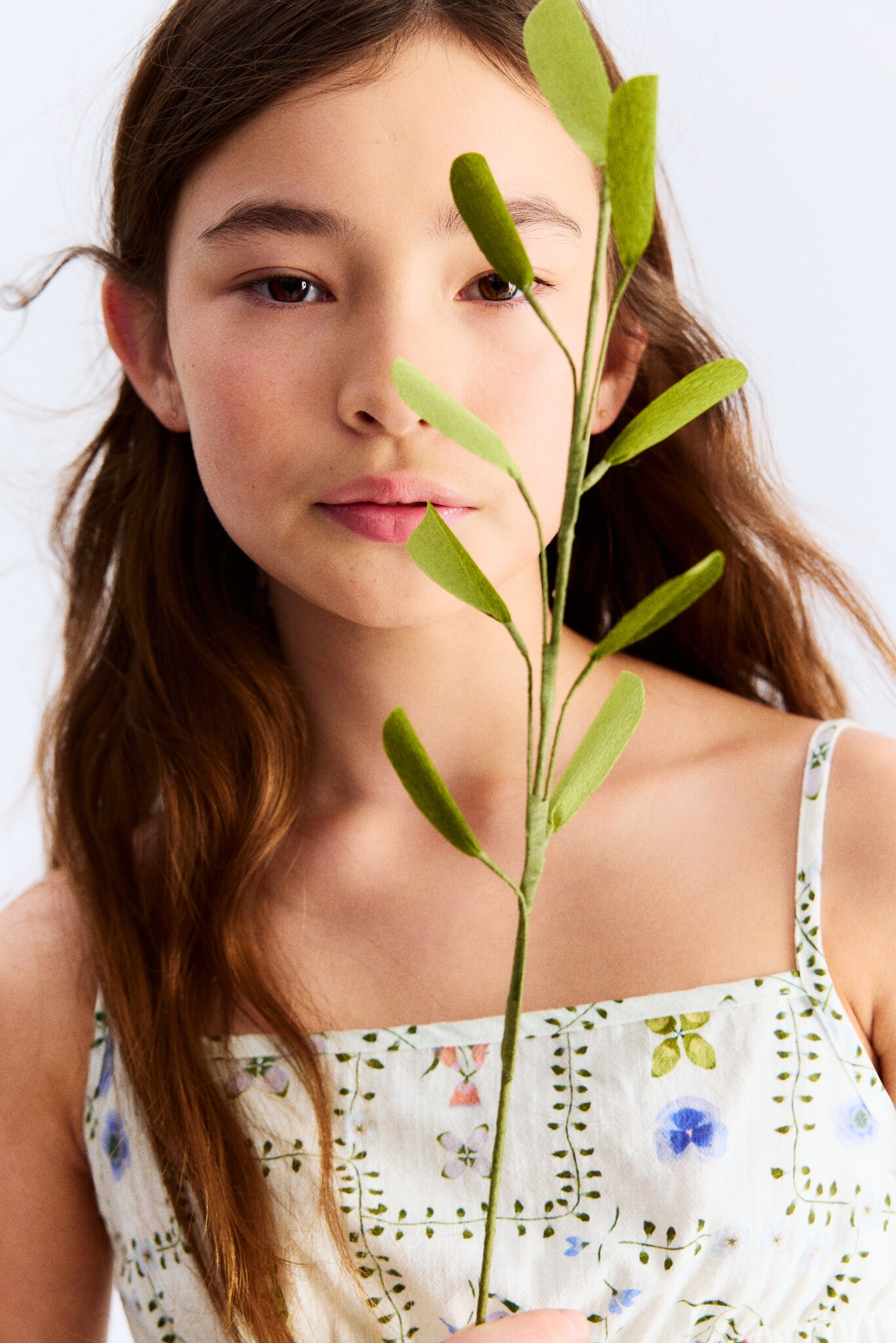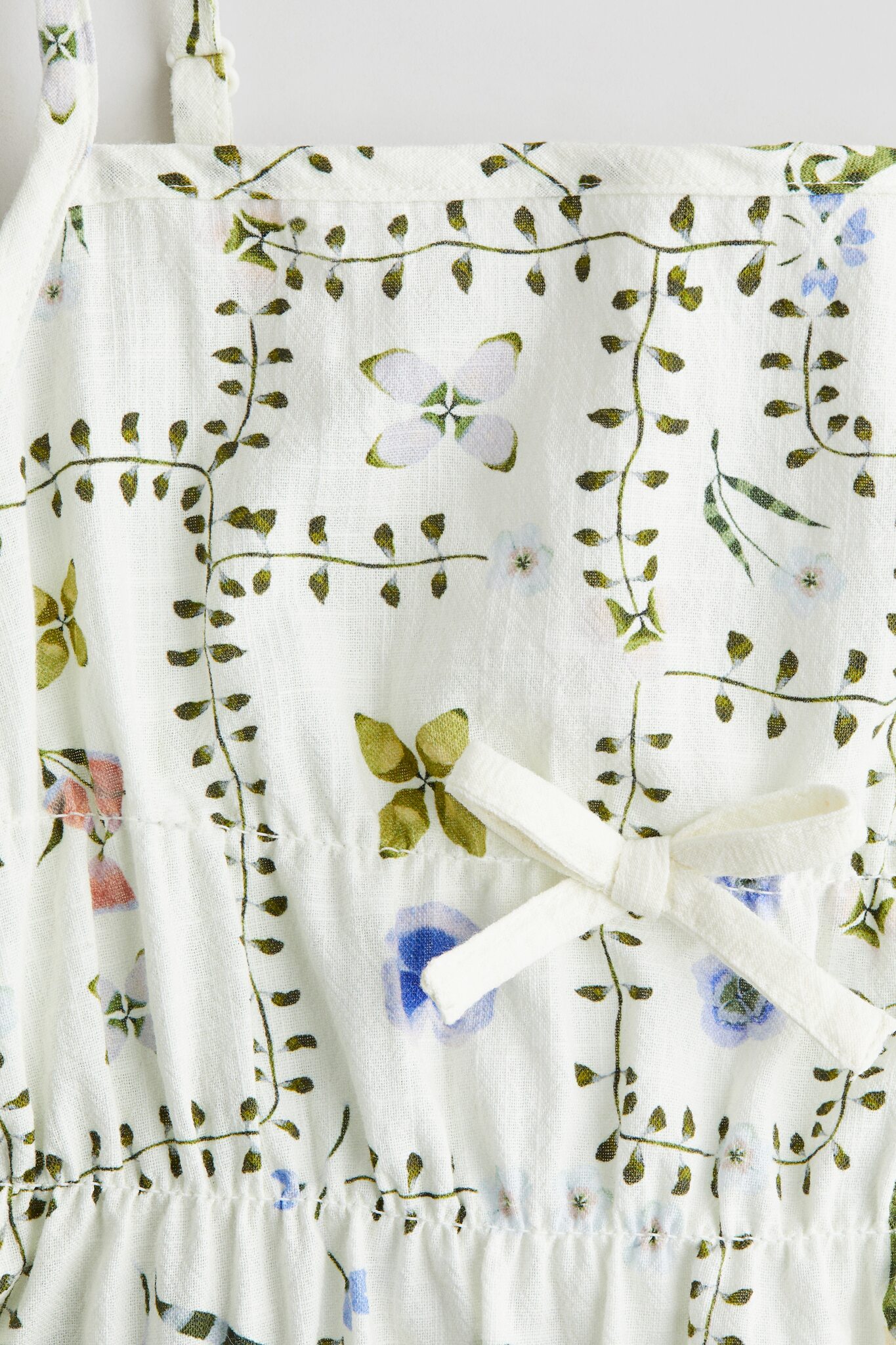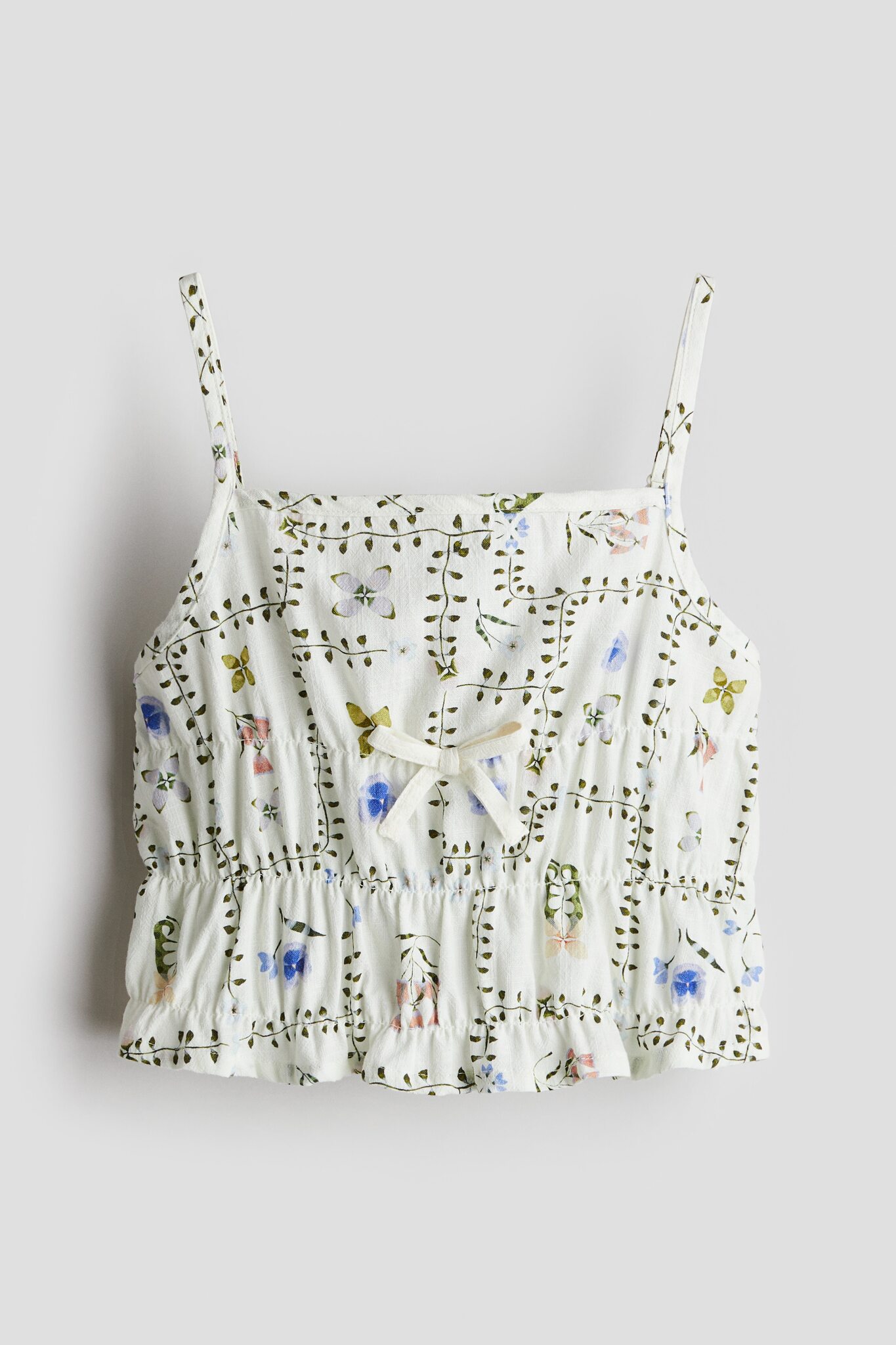 Топ из мягкой хлопковой ткани с принтом по всей поверхности и декоративным бантом спереди. Квадратный вырез, эластичные сборки и узкие регулируемые бретели.