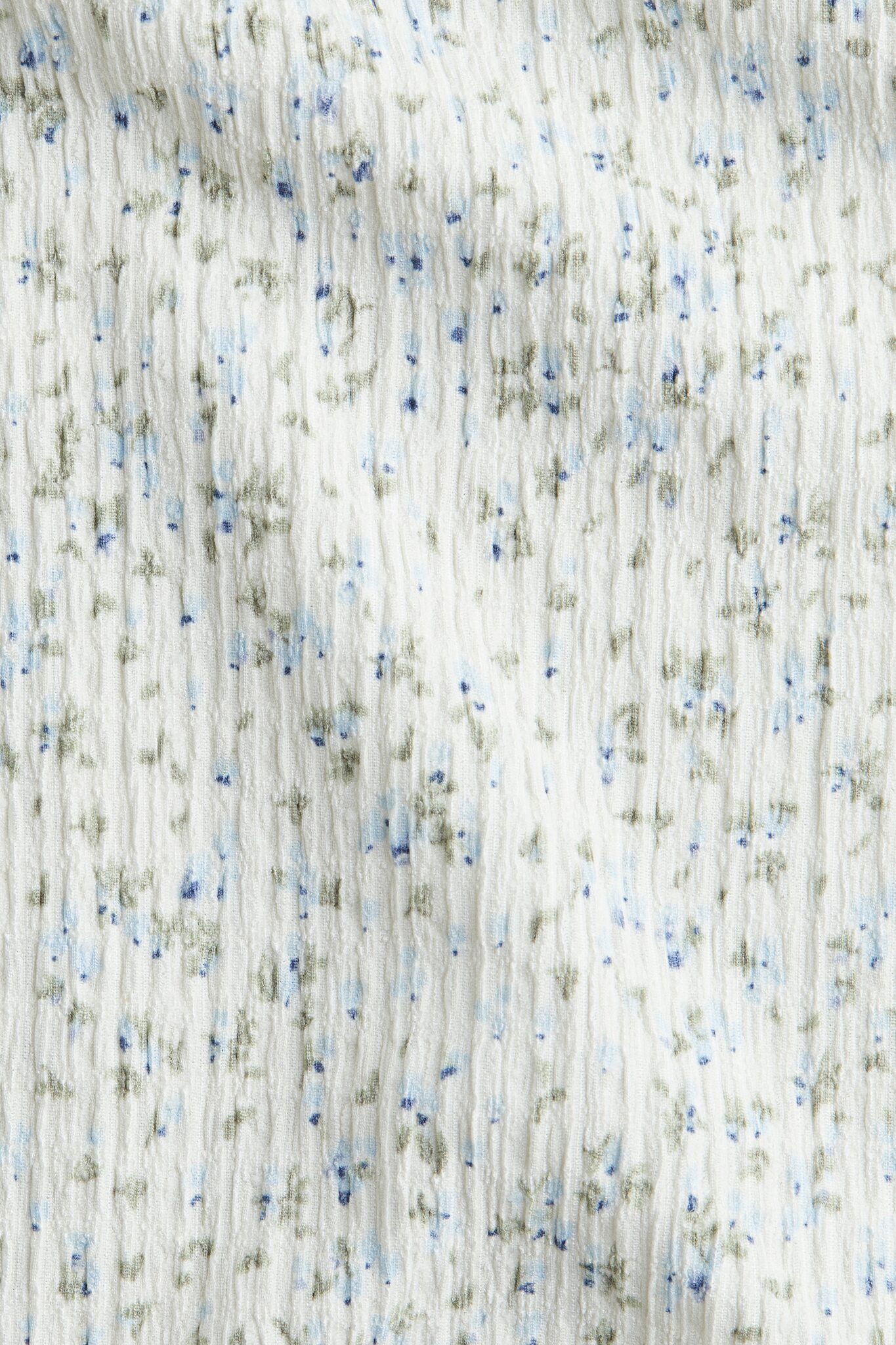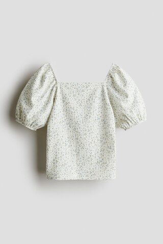 Топ из мягкого жатого трикотажа с квадратным вырезом, рукавами-буфами и узкой резинкой на манжетах.