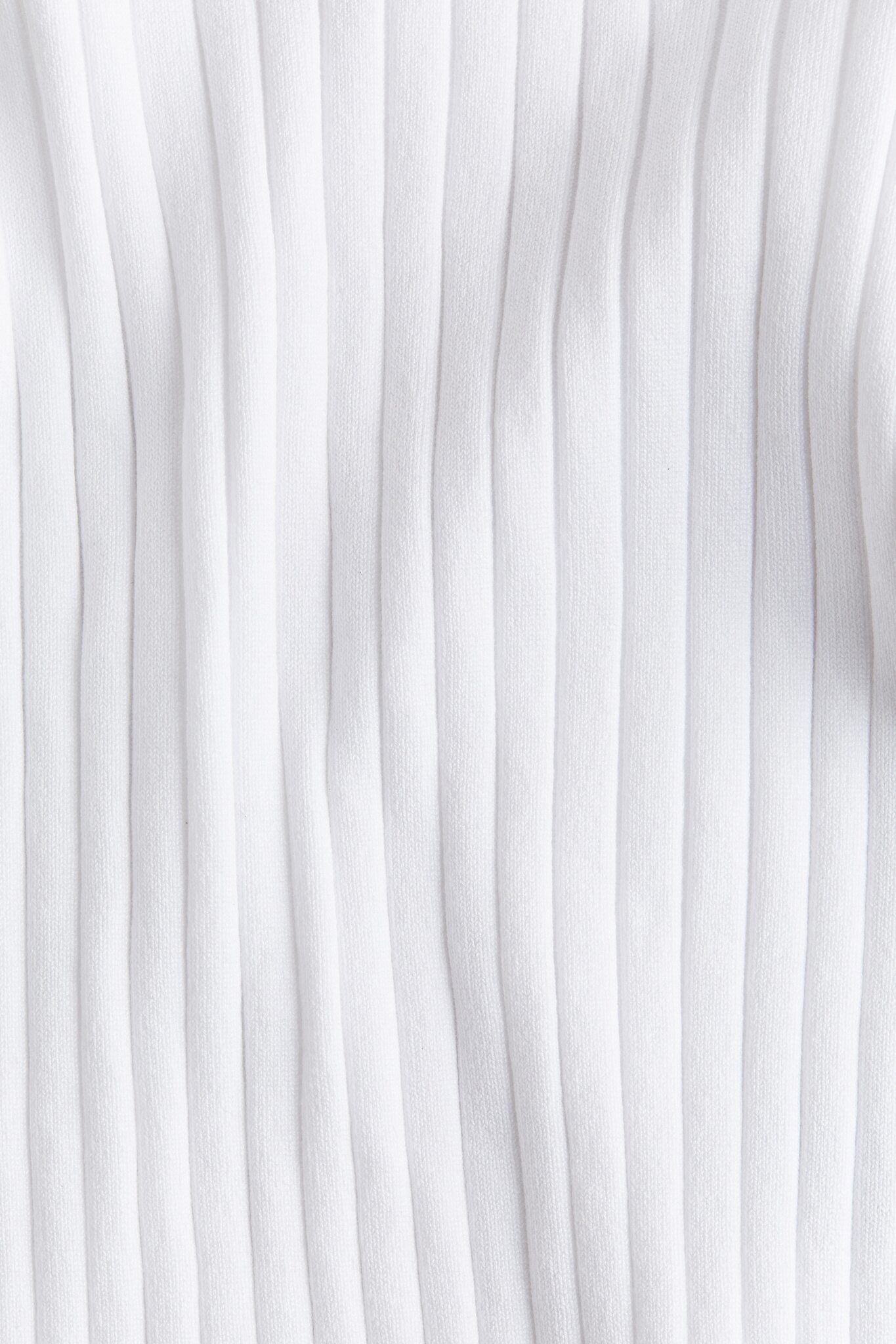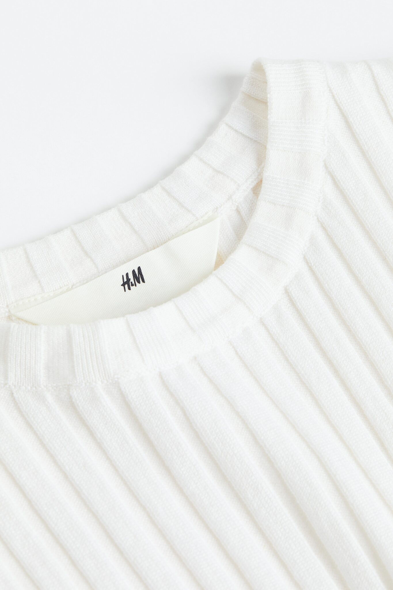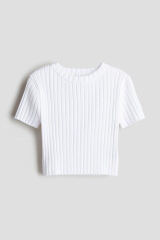 Мягкий топ из трикотажной резинки с короткими рукавами, круглым вырезом и необработанными краями на манжетах и подоле.