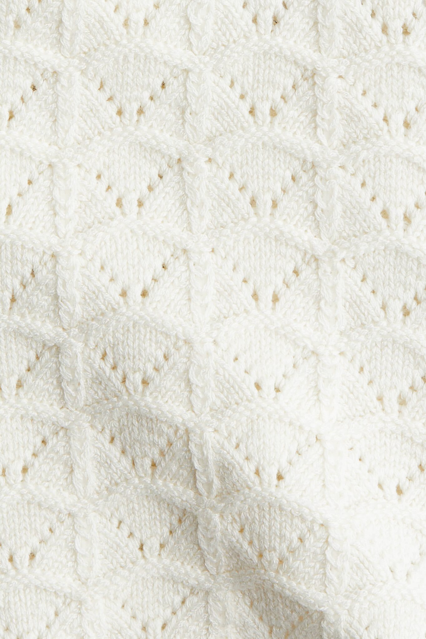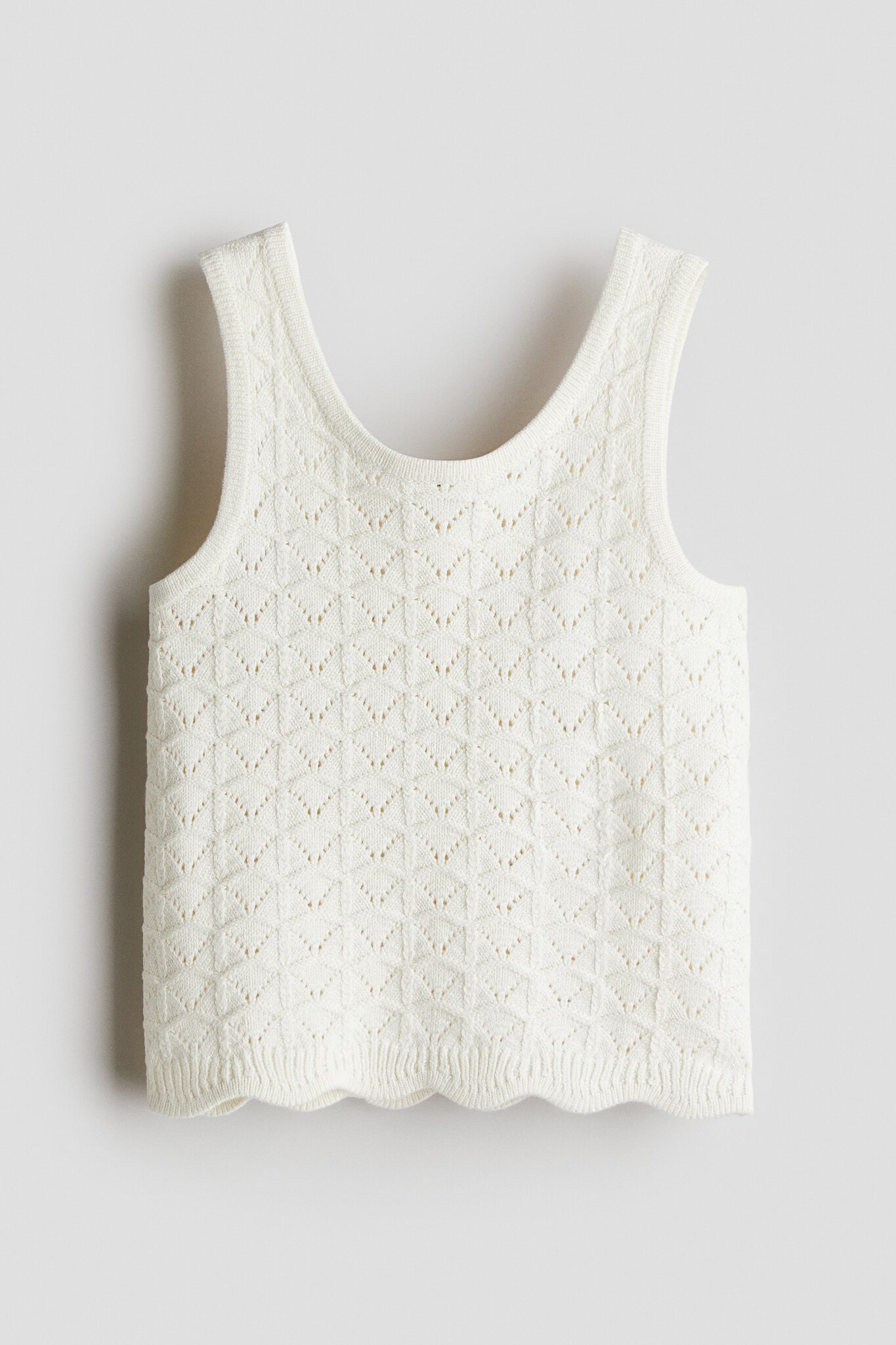 Мягкий трикотажный топ без рукавов с резинкой по краям, круглым вырезом и фестончатым подолом.
