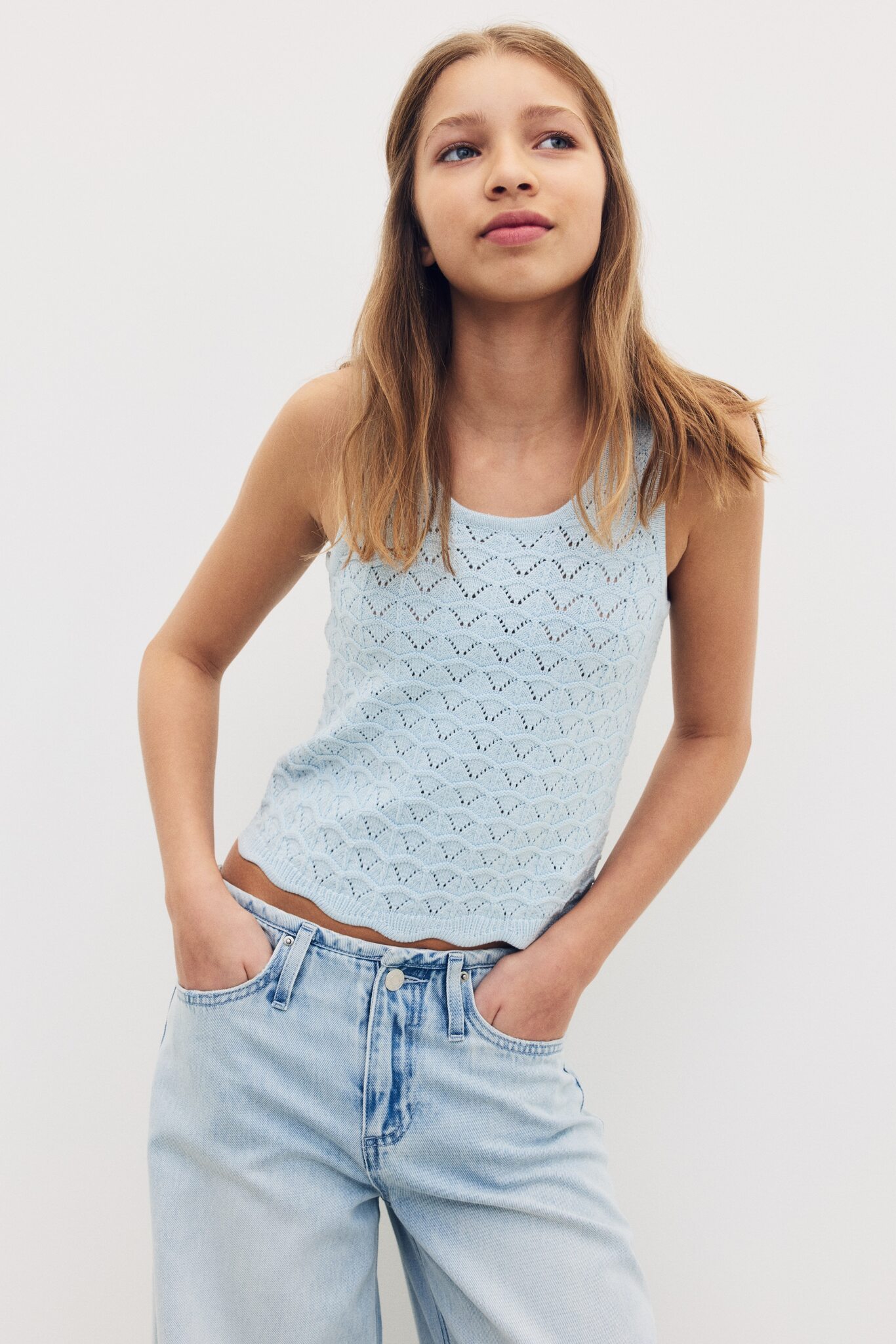 H&M Трикотажный топ без рукавов с узором, светло-голубой