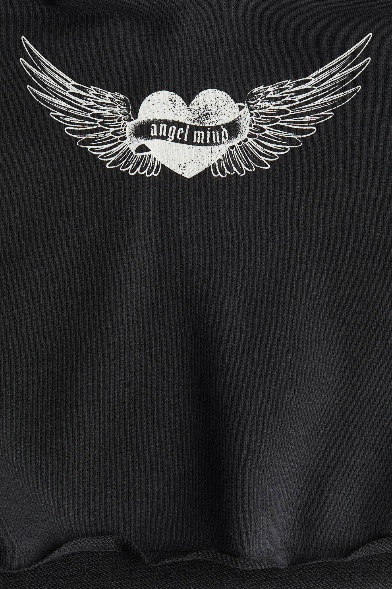 H&M Укороченная толстовка с капюшоном и принтом, черный