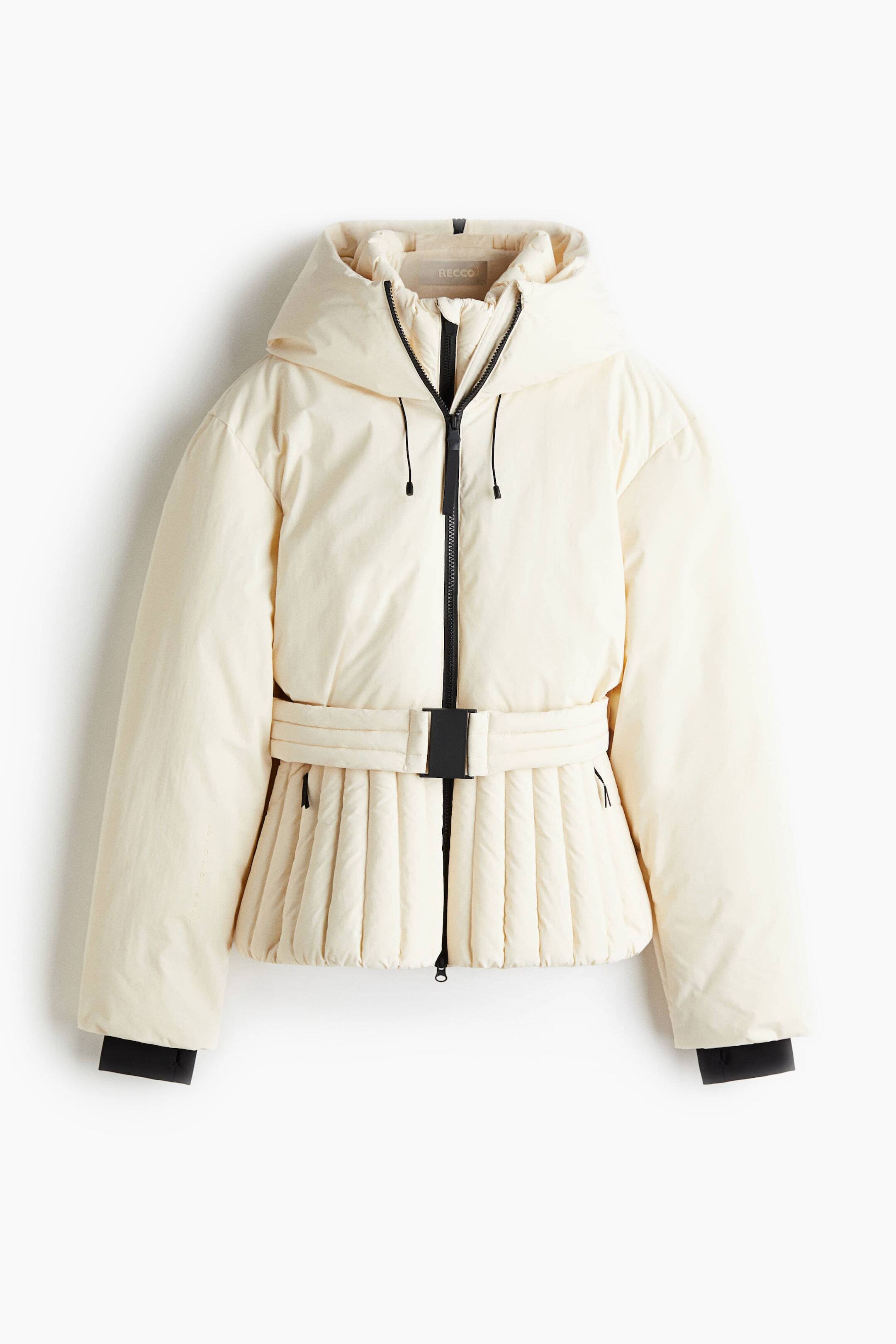 Утепленная горнолыжная куртка из водоотталкивающей функциональной ткани с технологией ThermoMove™, которая сохраняет тепло при низких температурах. Капюшон с эластичной кулиской спереди. Капюшон на молнии, который идет от макушки до затылка, капюшон можно сложить в воротник. Встроенный воротник-стойка из стеганого плетения с подкладкой внутри. Потайные боковые карманы на молнии, один внутренний карман на молнии и мягкий сетчатый внутренний карман с тряпочкой для горнолыжных очков. Спущенное плечо, длинные рукава, один боковой карман на молнии на рукаве и внутренние манжеты с отверстиями для больших пальцев. Слегка расклешенный стеганый подол со скрытой кулиской и встроенным снежным воротником с застежкой-кнопкой спереди. Эластичный пояс на талии с пластиковой пряжкой.