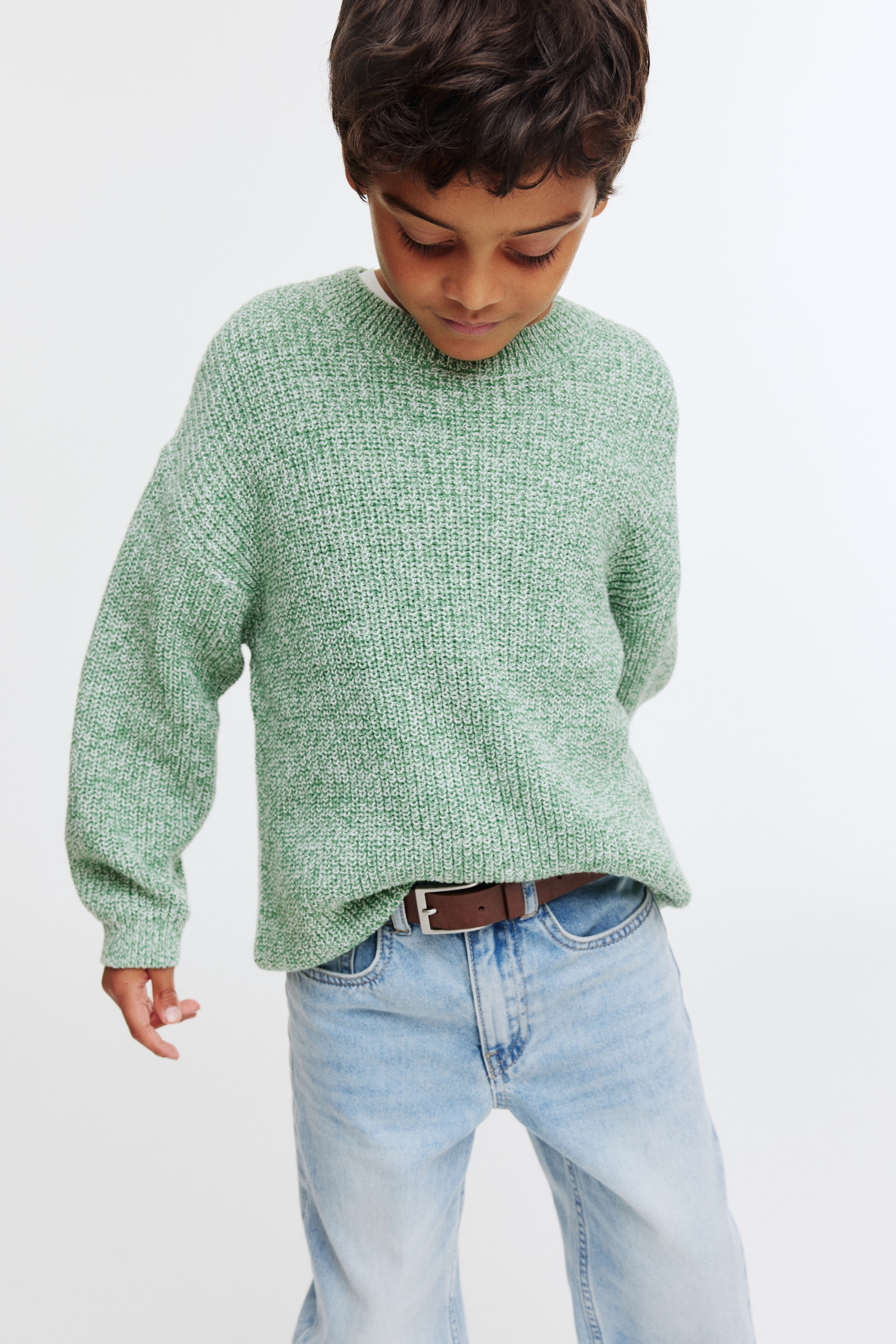 H&M Вязаный свитер в рубчик, зеленый