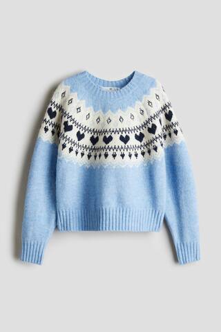 H&M Вязаный свитер жаккардовый, голубой