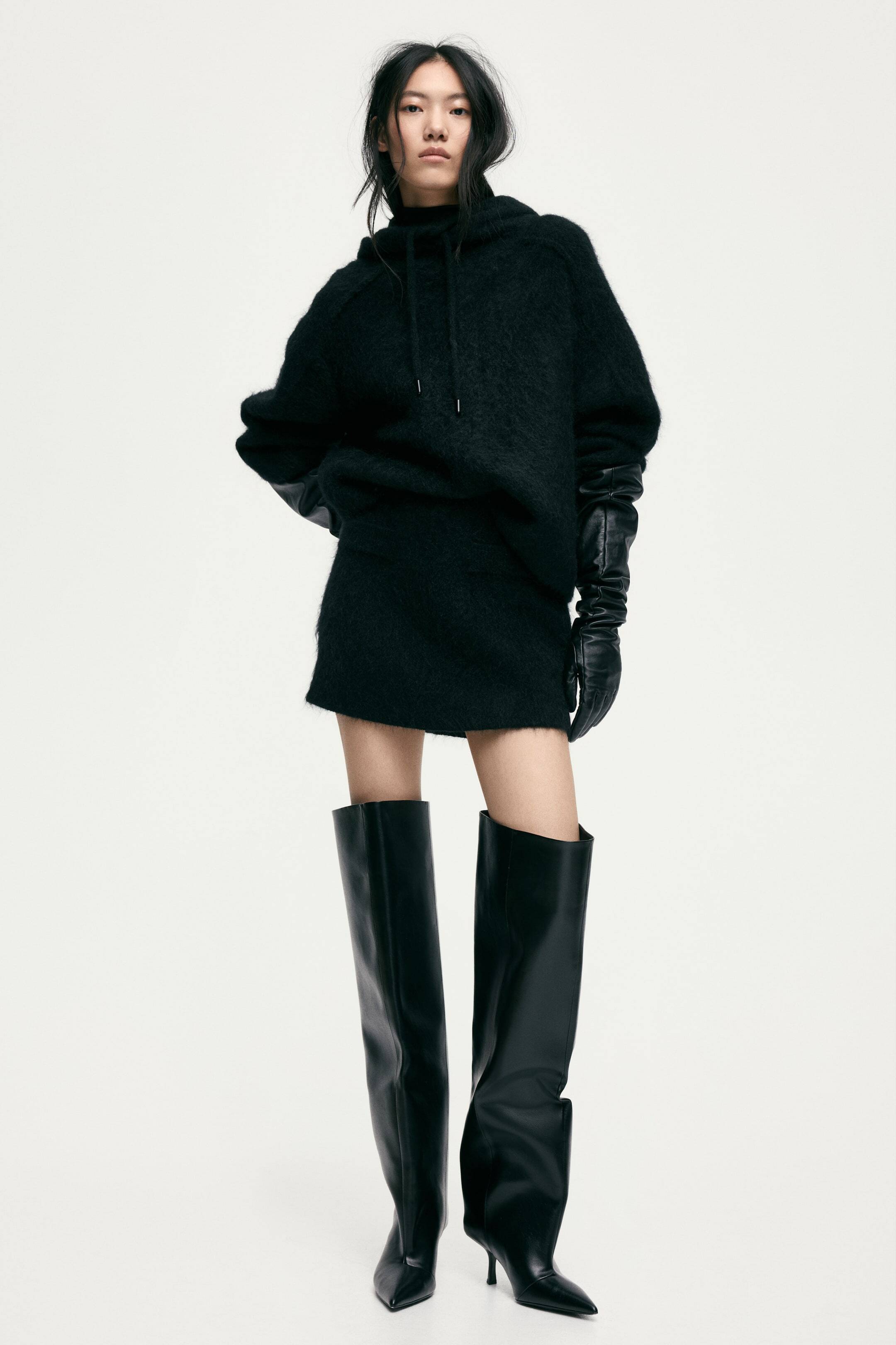 Короткая, приталенная юбка из мягкого трикотажа из мохера и шерсти. Потайная резинка на талии и прорезные карманы спереди.