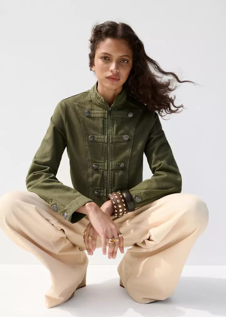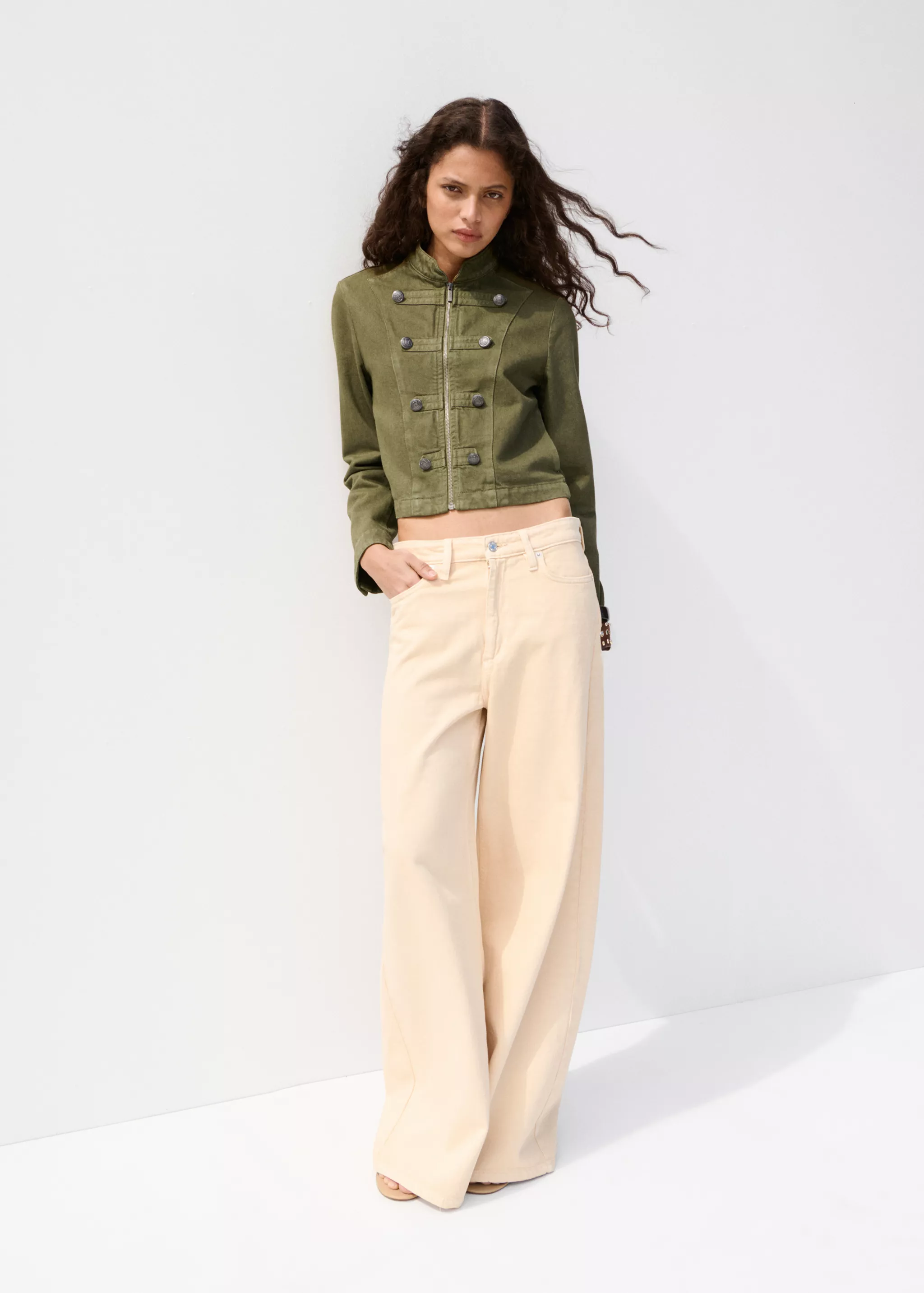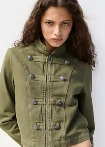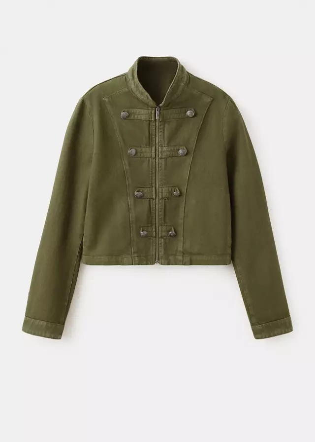 MANGO Приталенный жакет с воротником-стойкой, хаки