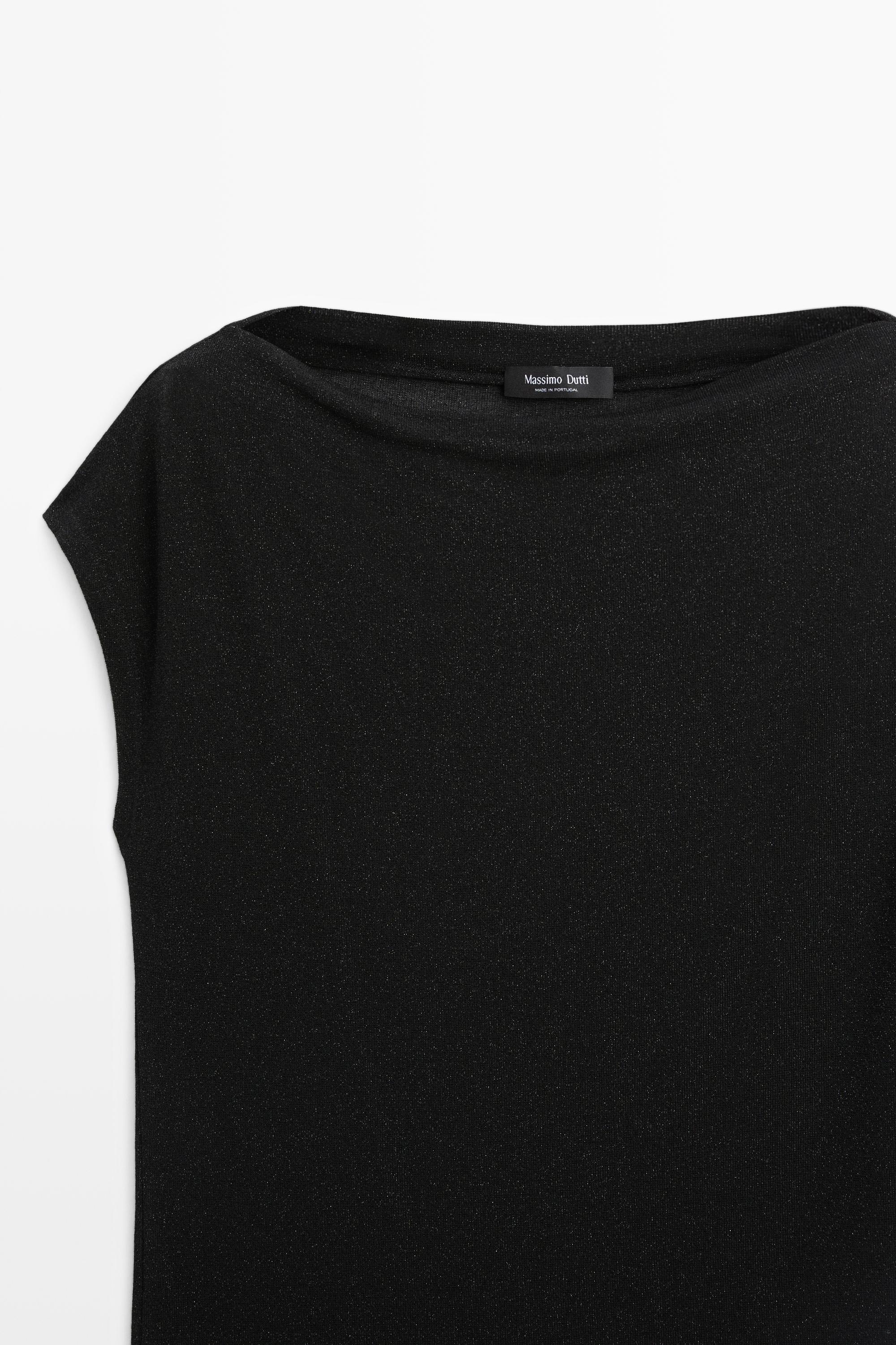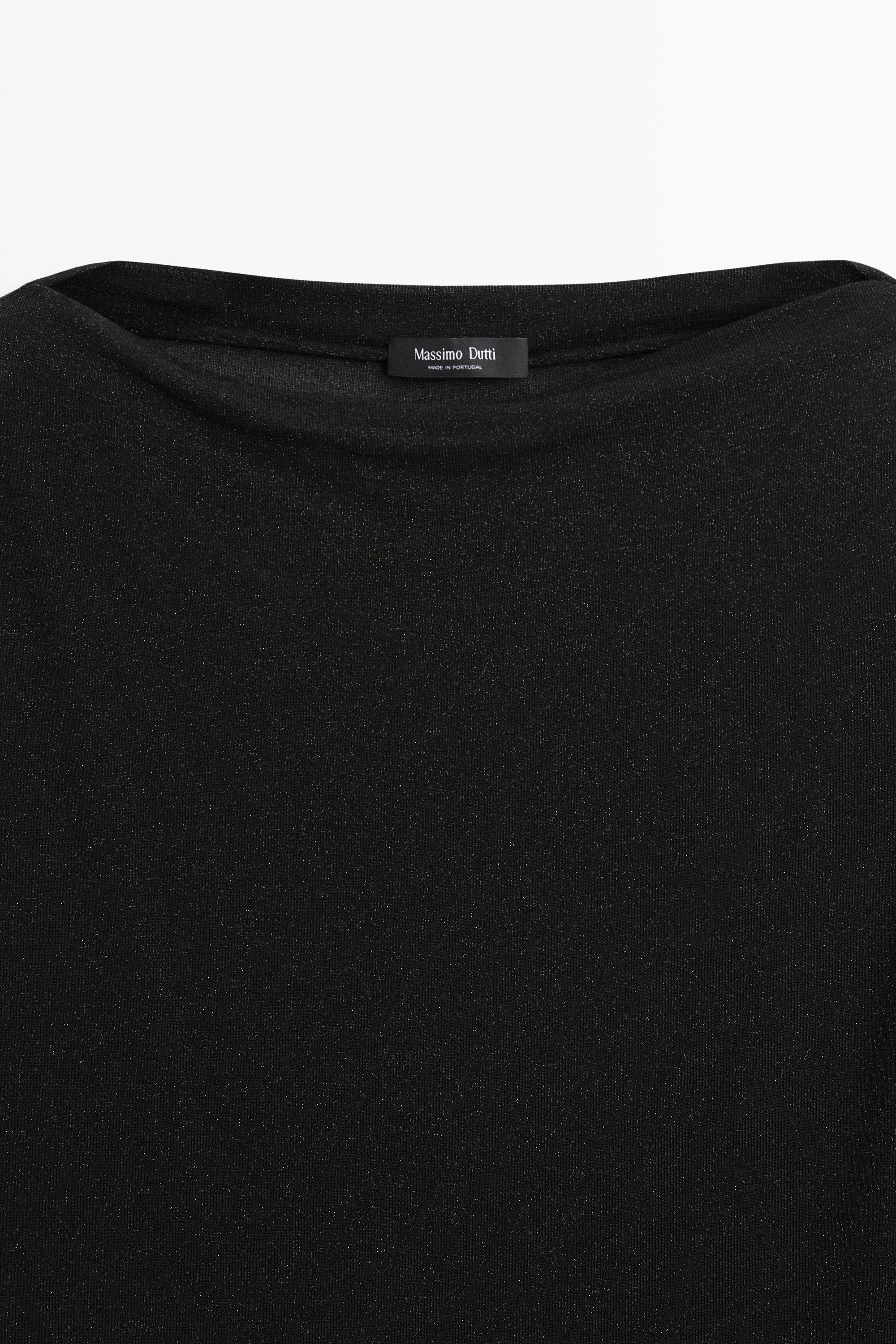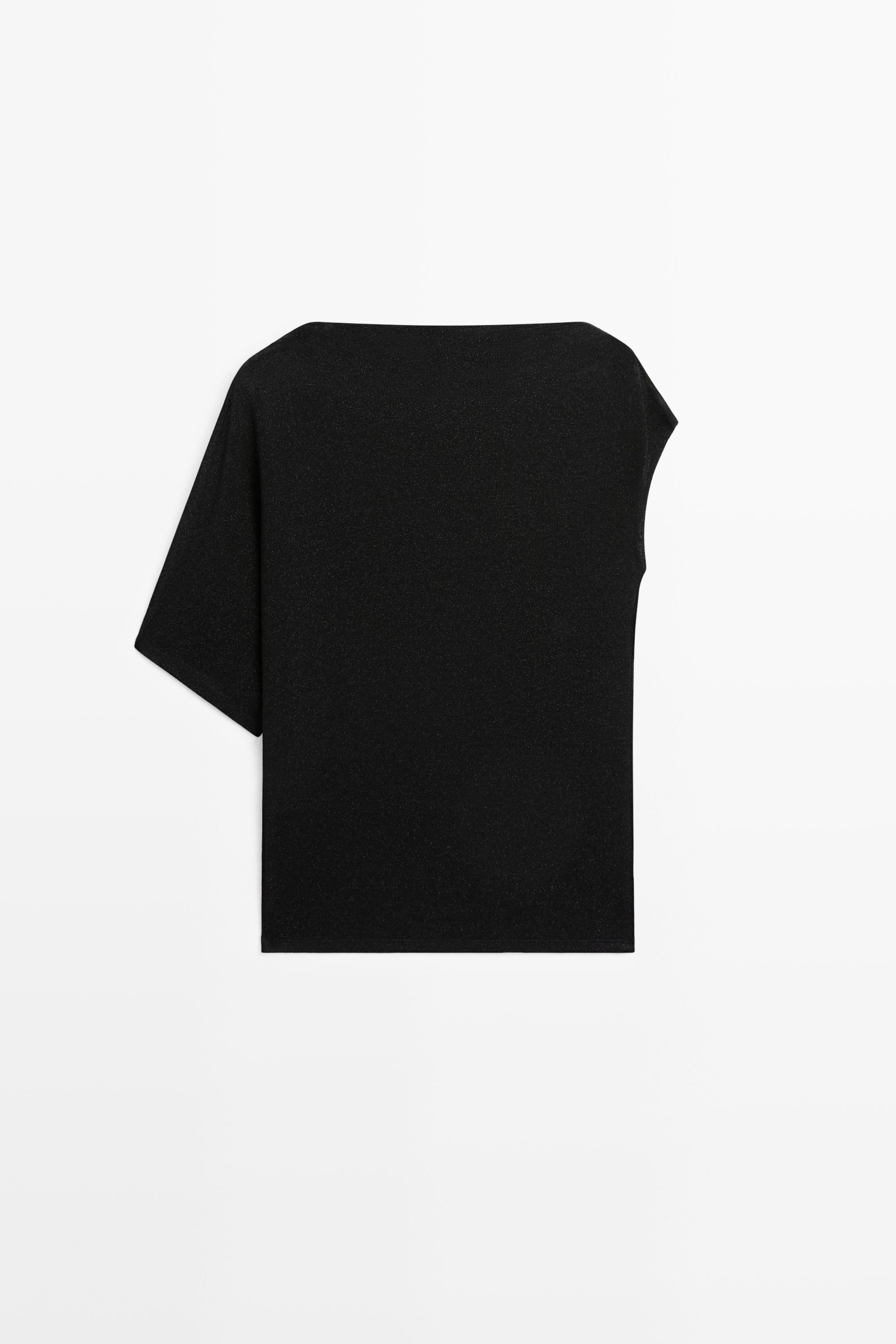 Massimo Dutti Асимметричная легкая футболка с металлическим блеском, черный