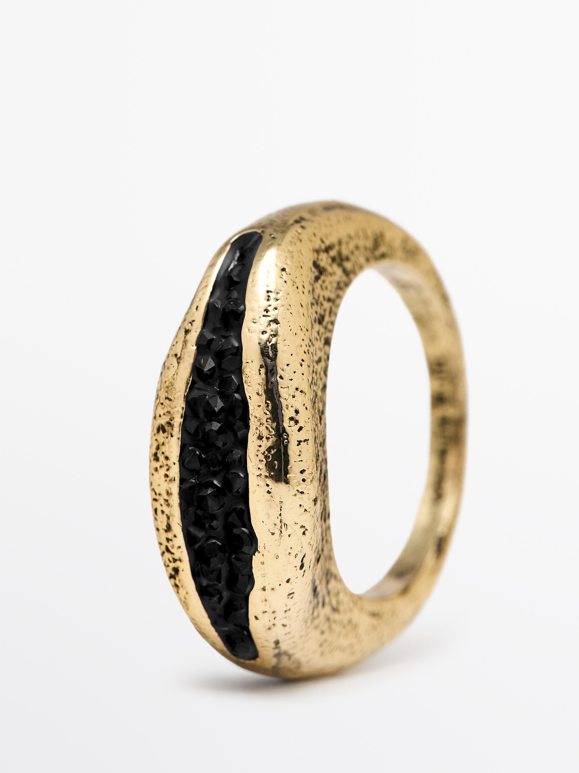 Massimo Dutti Асимметричное кольцо со стразами, черный