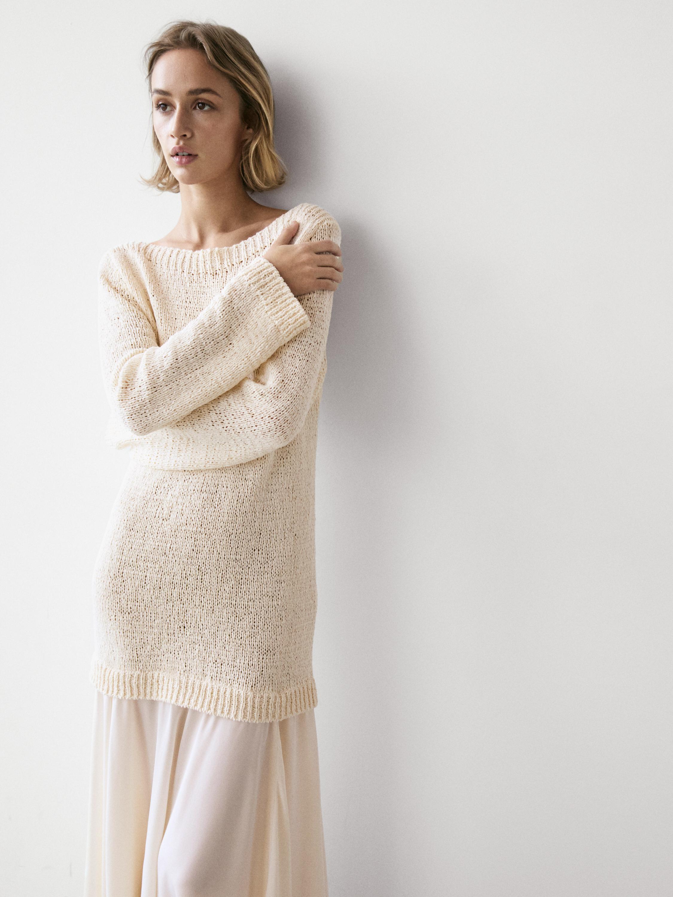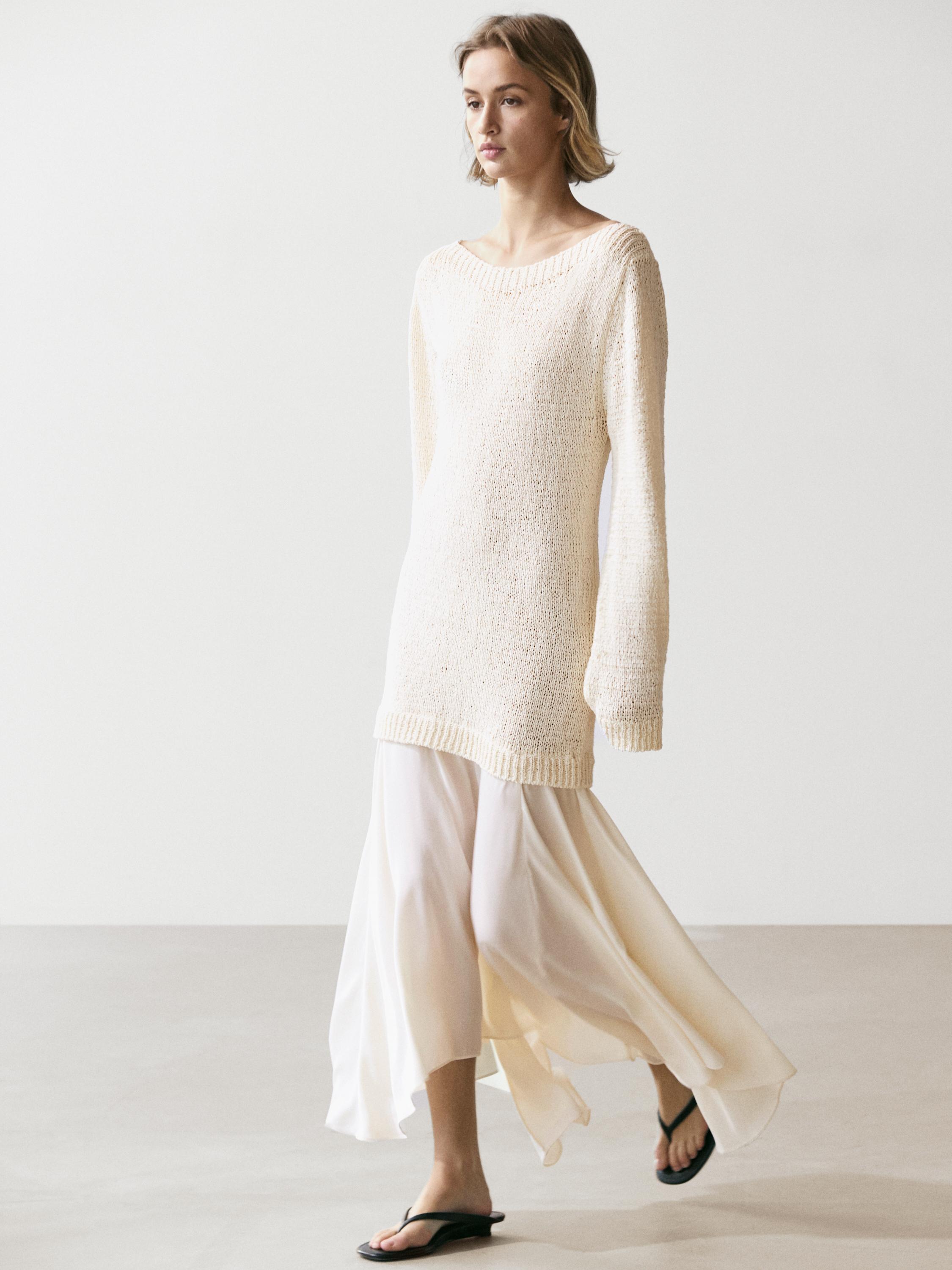 Massimo Dutti Асимметричное платье миди, натуральный/кремовый