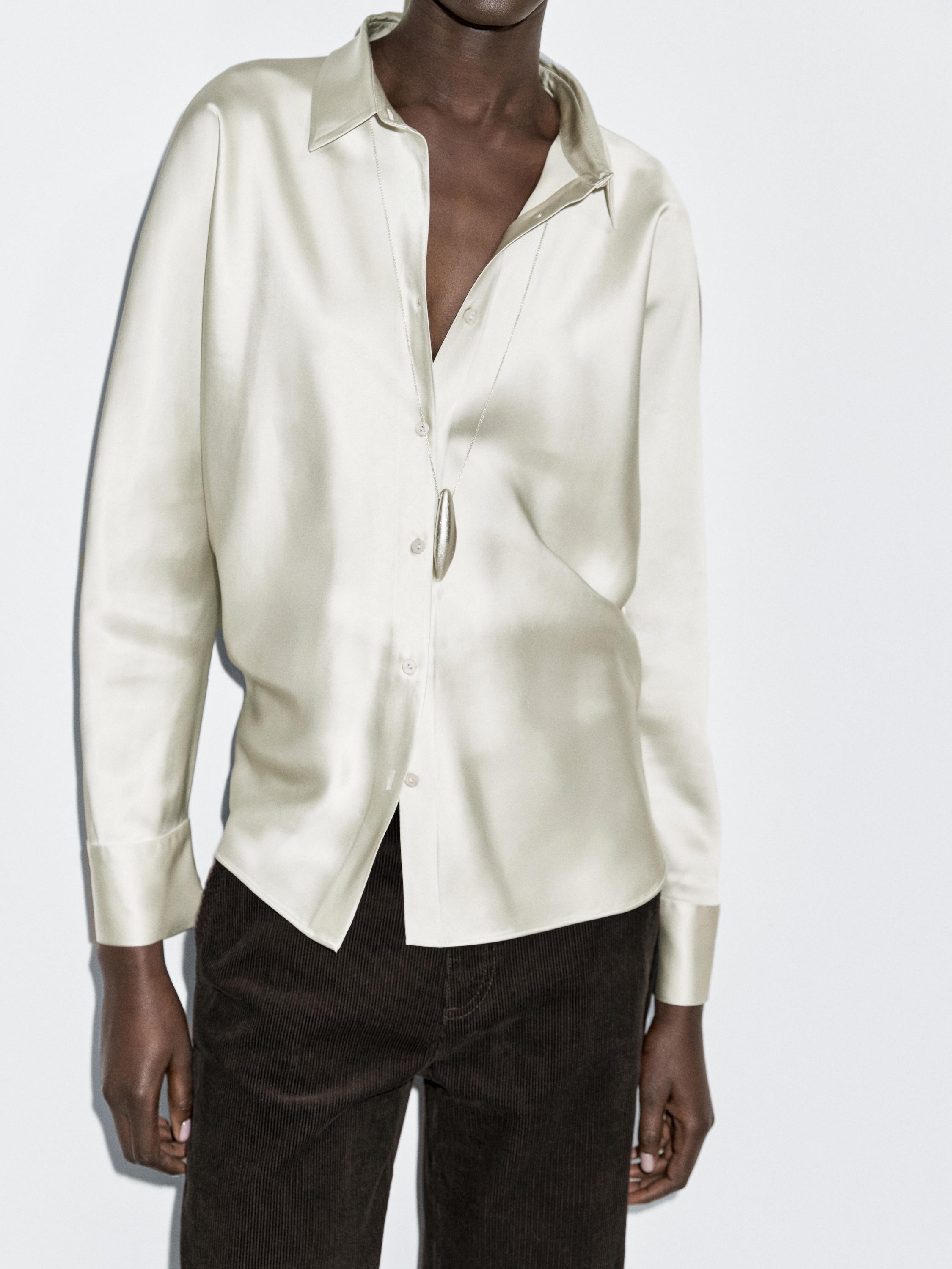 Massimo Dutti Атласная рубашка с рукавами «летучая мышь», серебряный