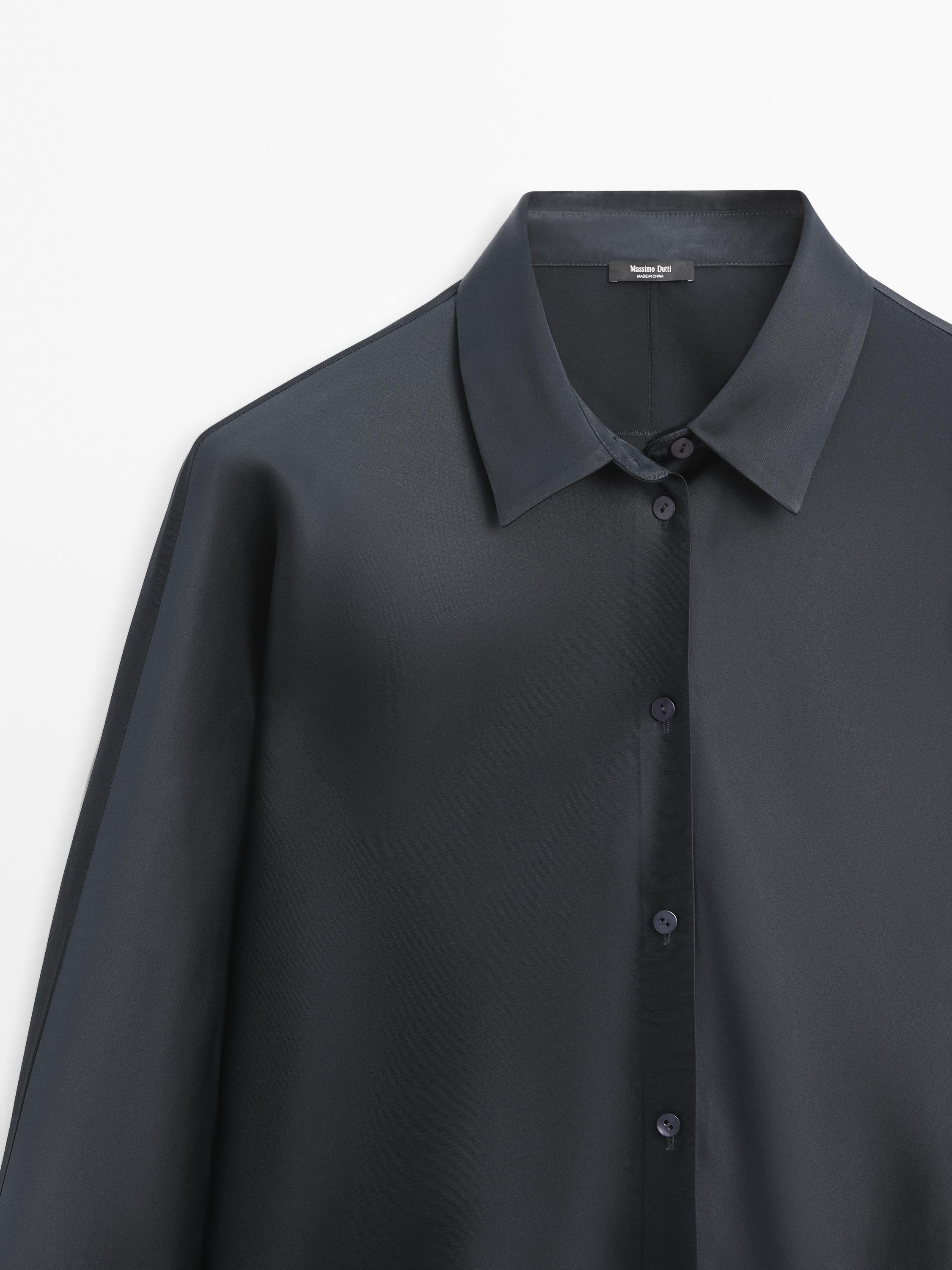 Рубашка из 100% хлопка. Длинные рукава с манжетами на пуговицах. Воротник рубашечного типа. Застежка на пуговицы спереди.