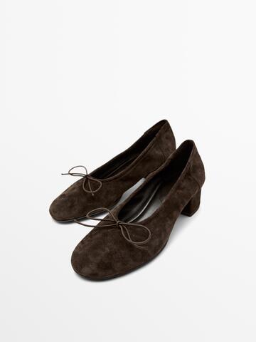 Massimo Dutti Балетки на высоком каблуке, коричневый