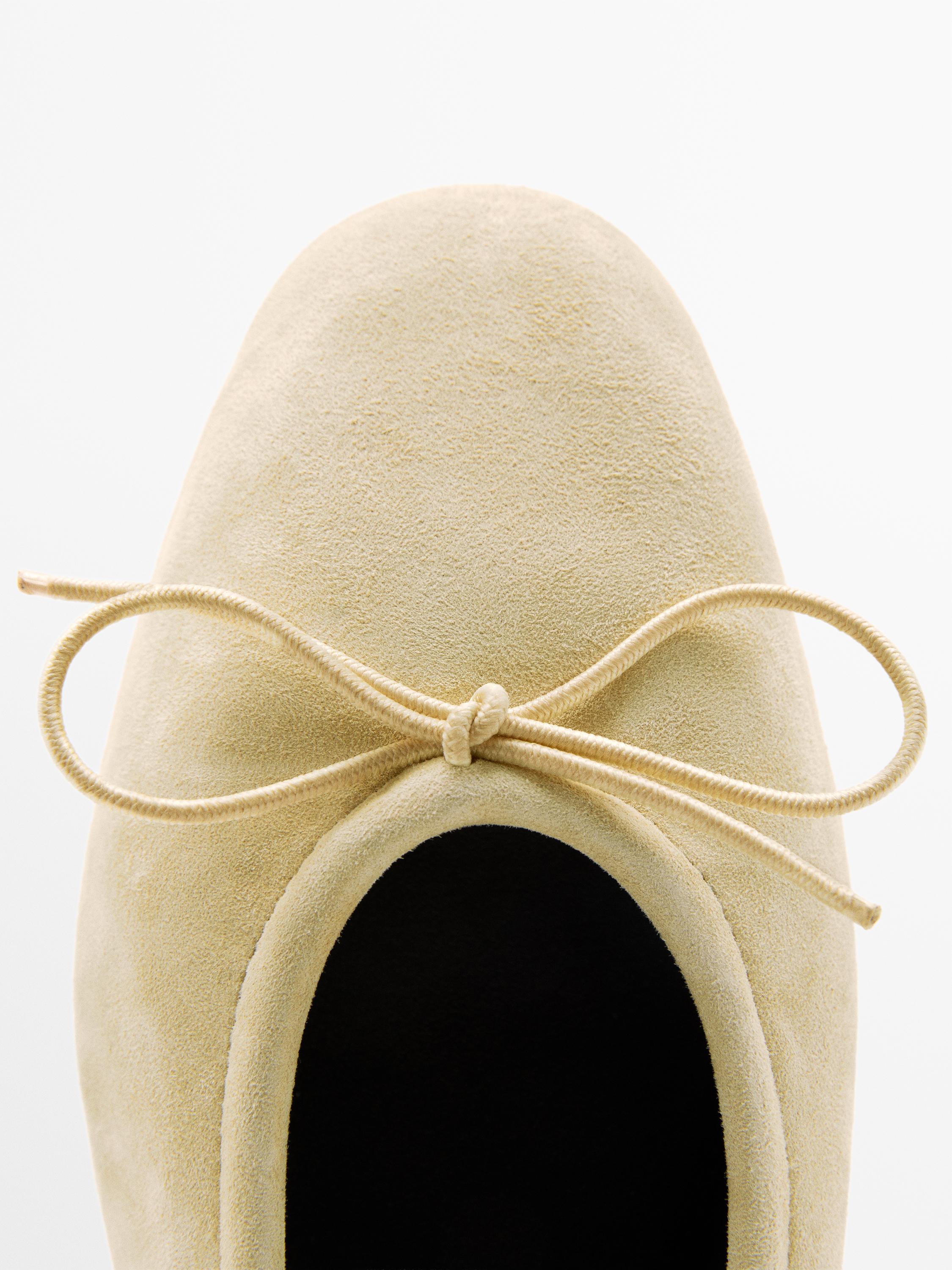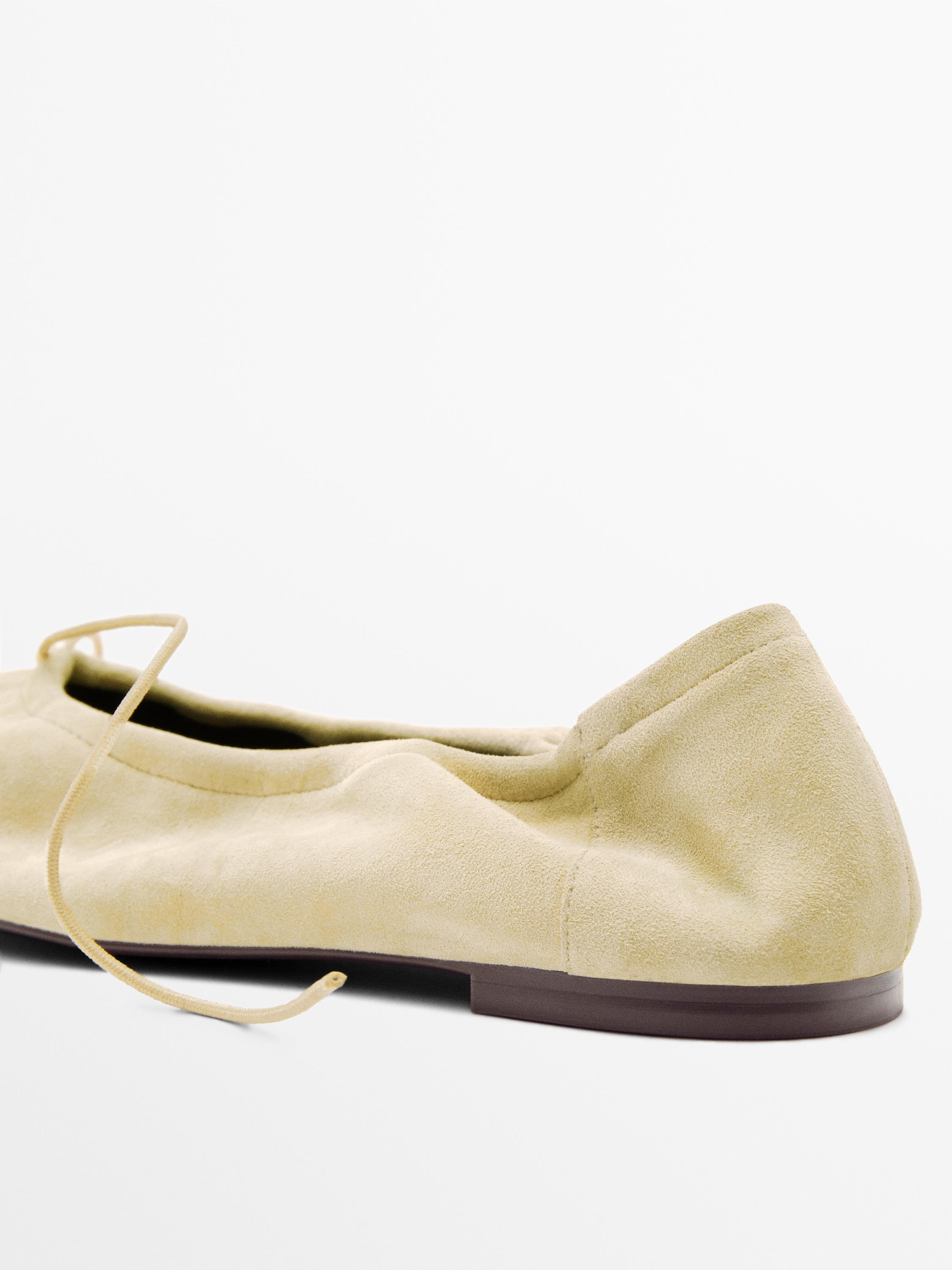 Massimo Dutti Балетки со сборками и бантом, бежевый