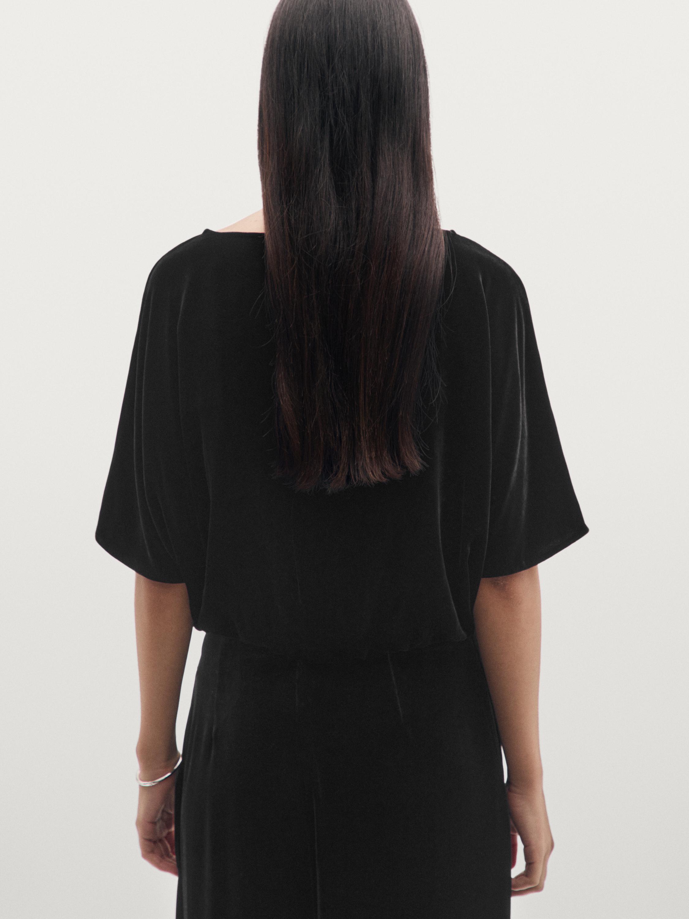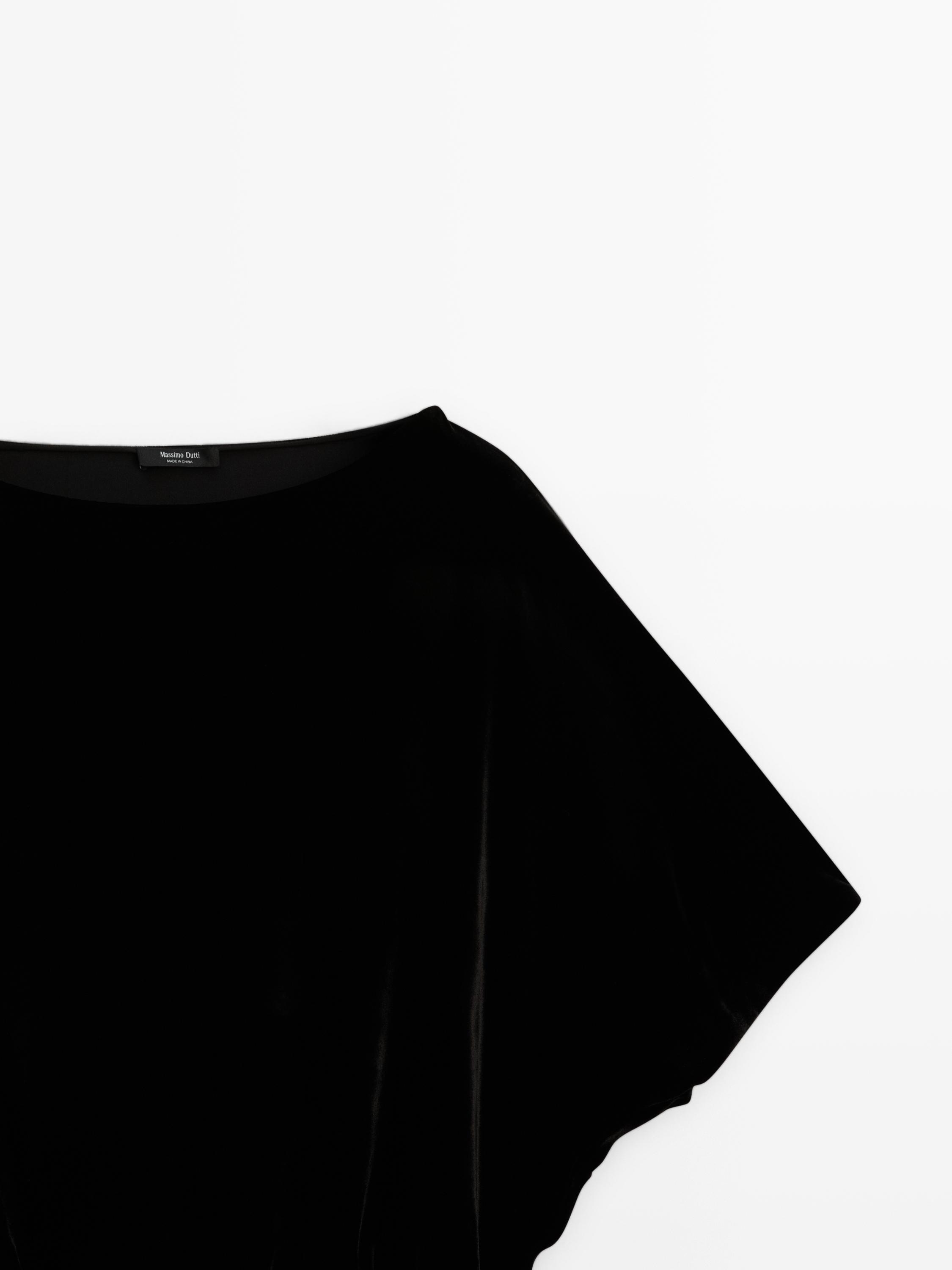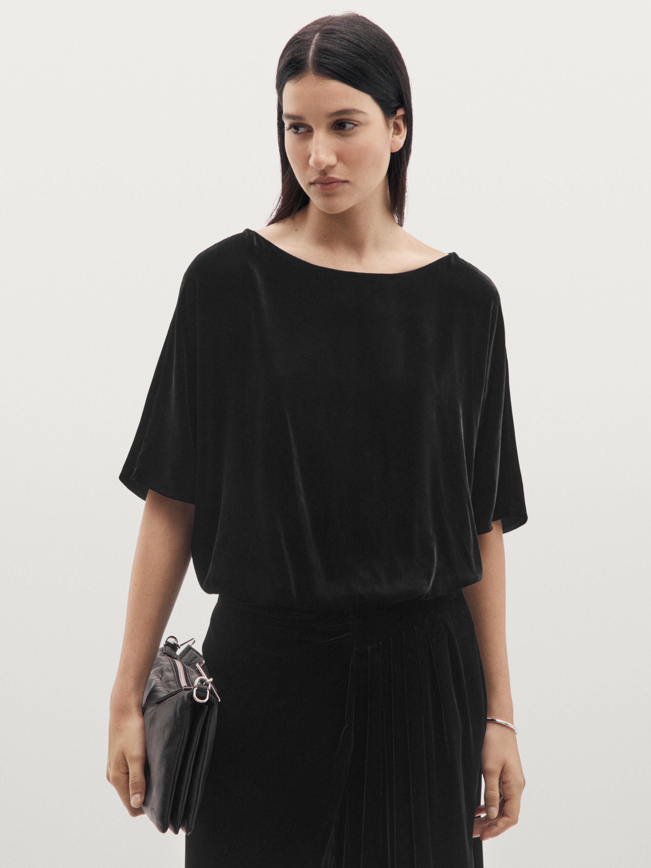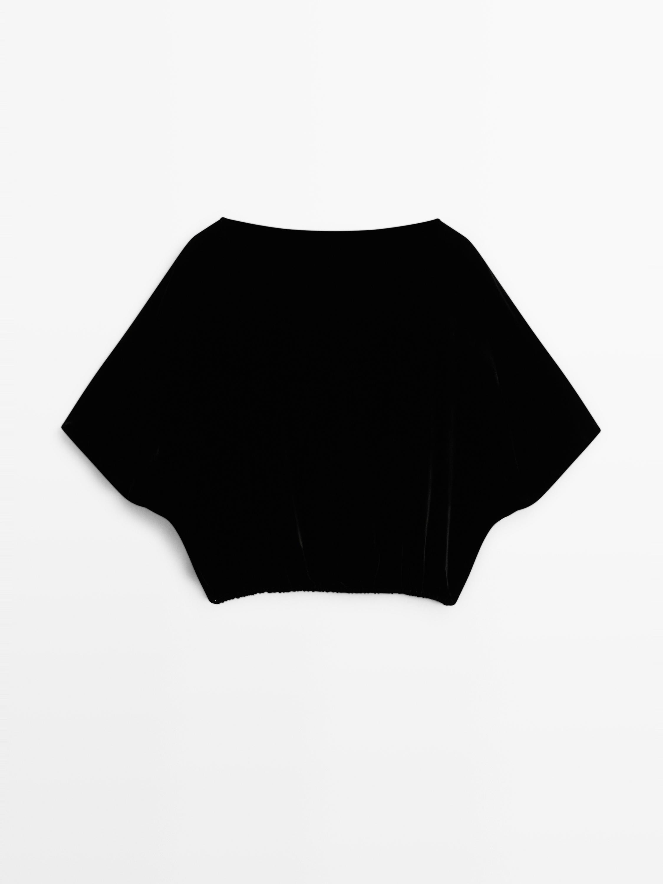 Massimo Dutti Бархатный топ с короткими рукавами, черный