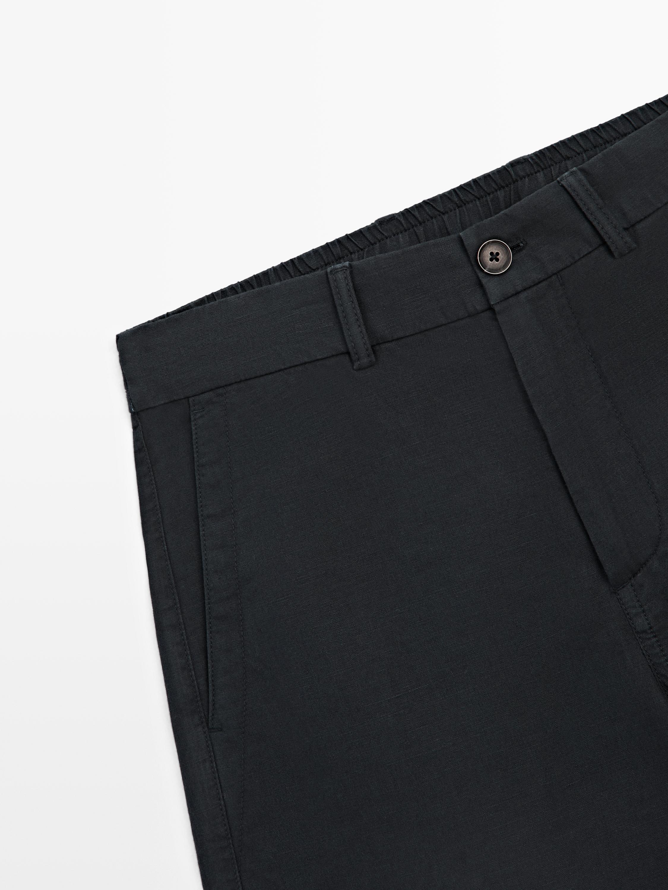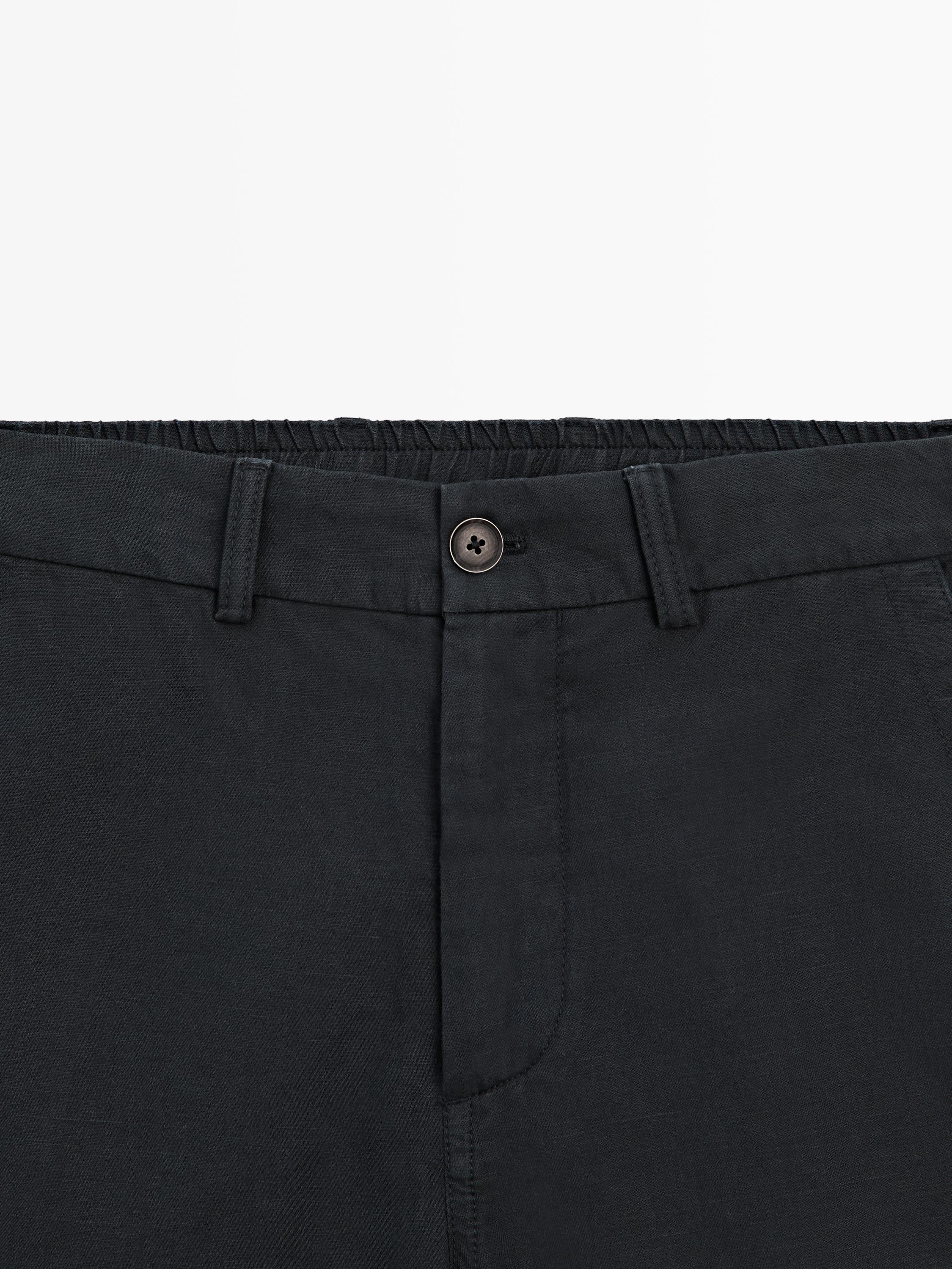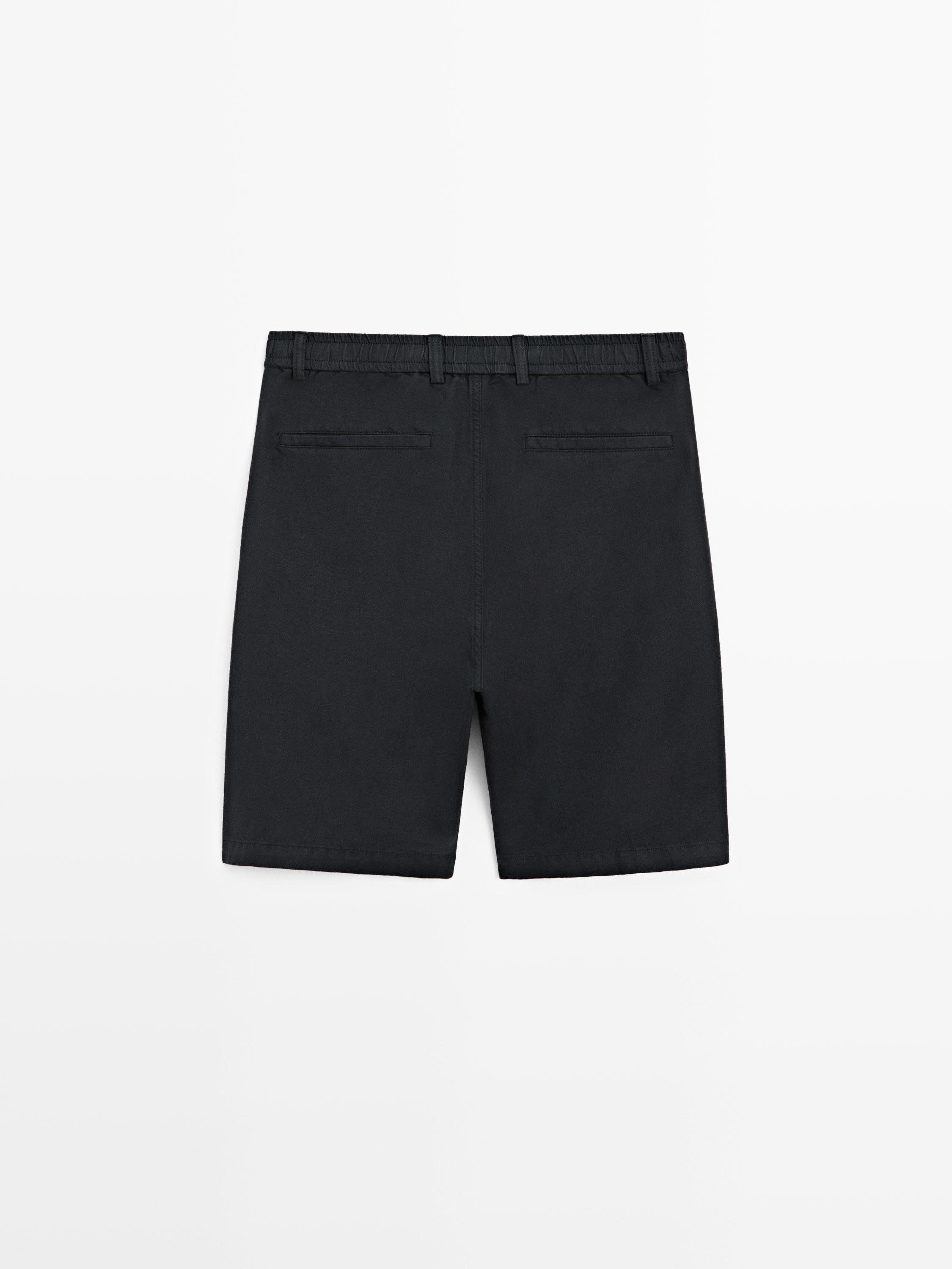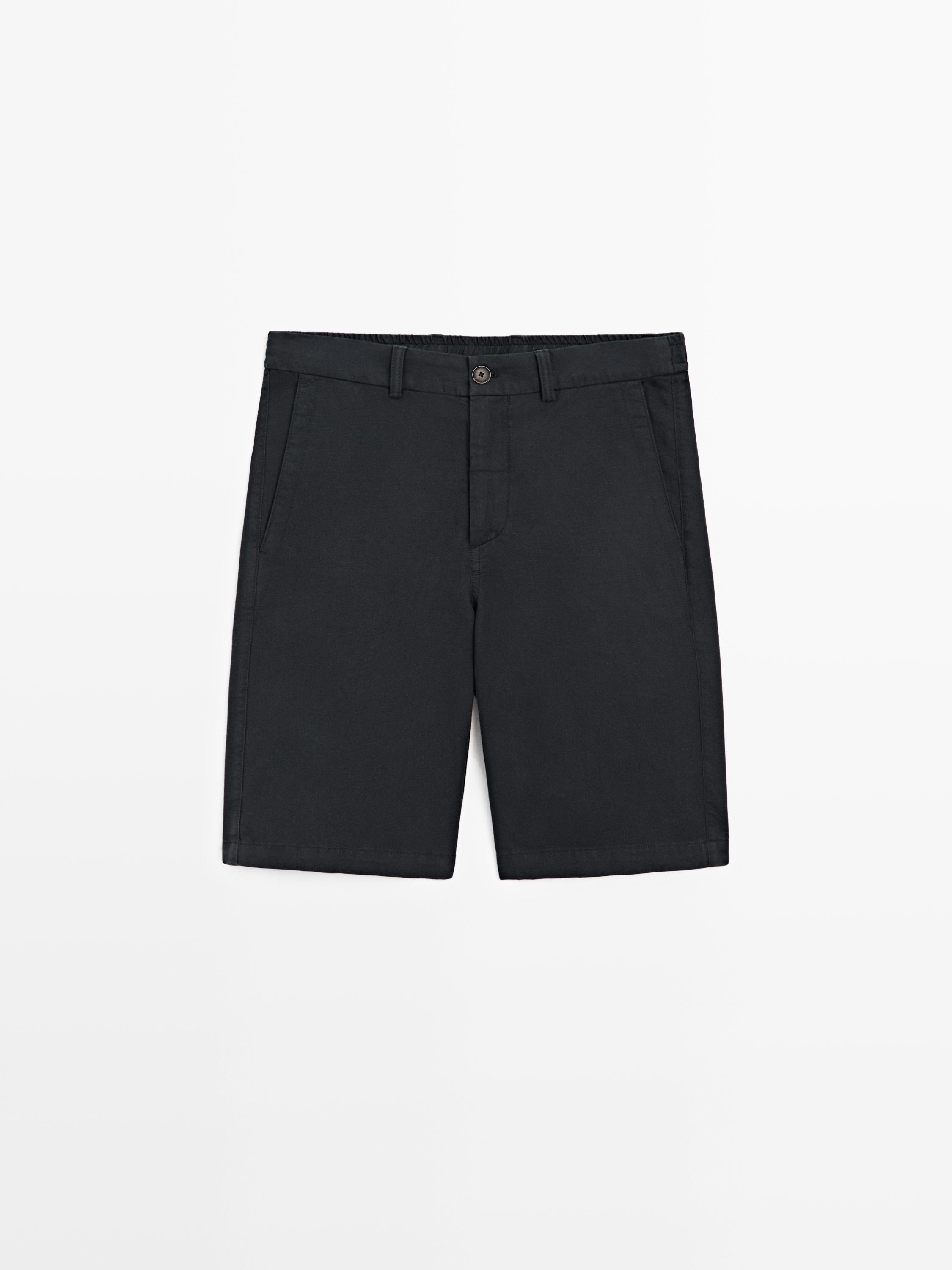 Massimo Dutti Бермуды из смесовой льняной ткани, темно-синий