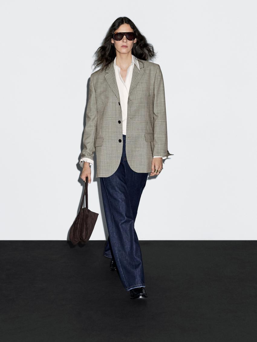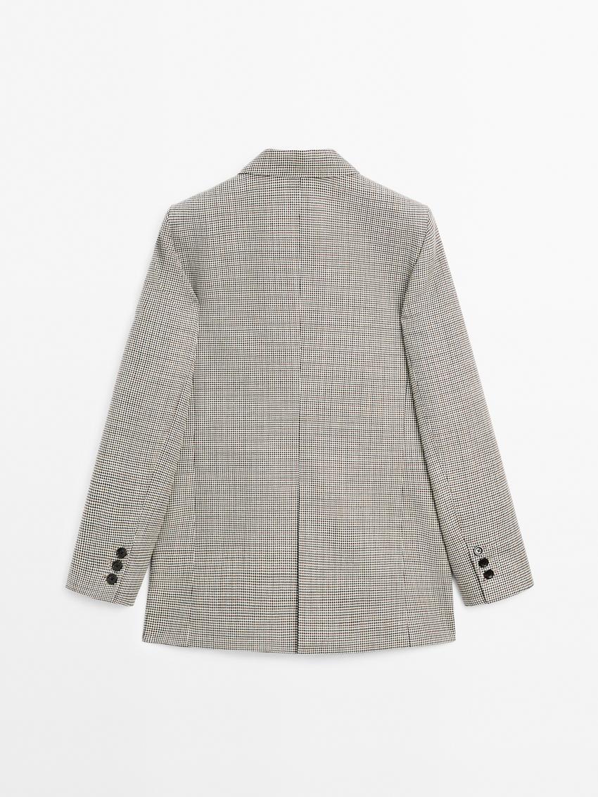 Massimo Dutti Блейзер из 100% шерсти с узором «гусиная лапка», бежевый
