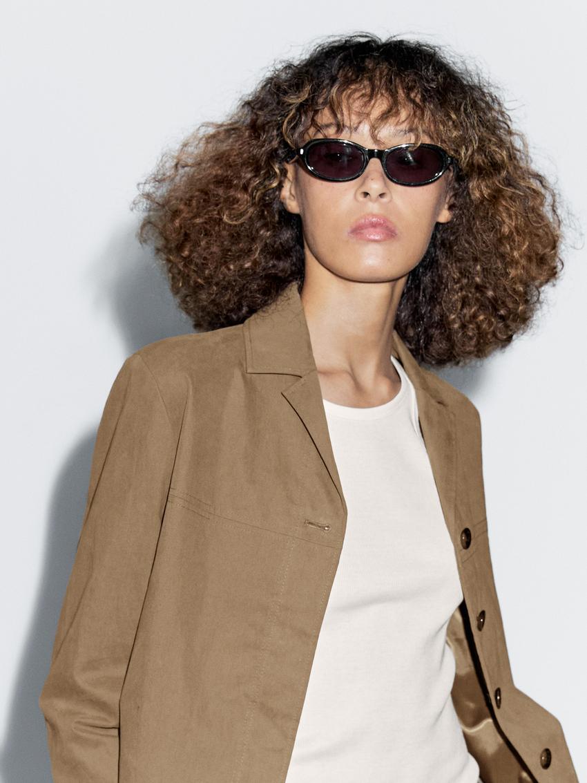 Massimo Dutti Блейзер из смесового хлопка с пуговицей, бежевый