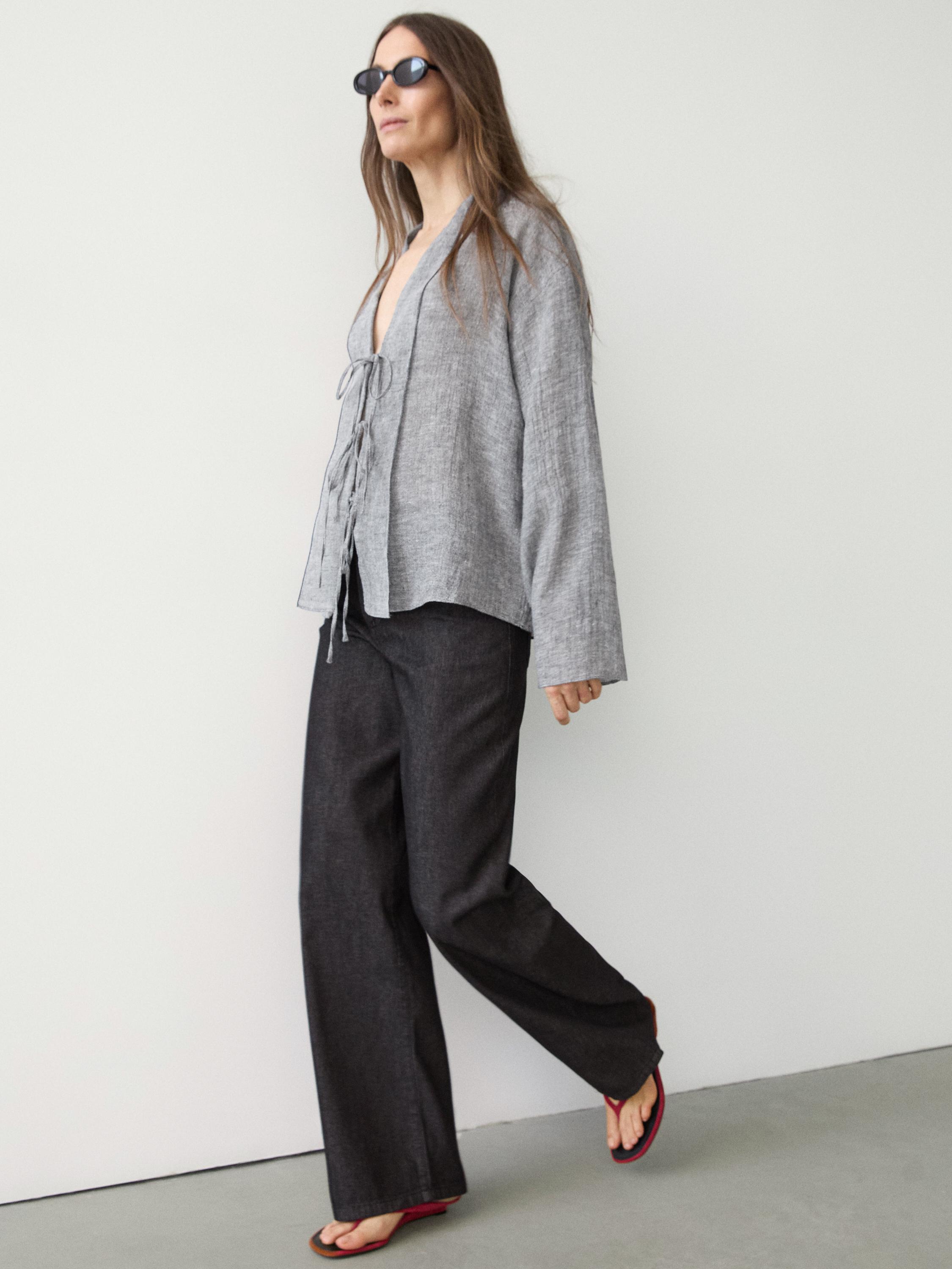 Massimo Dutti Блуза из смесового льна с завязками, серый