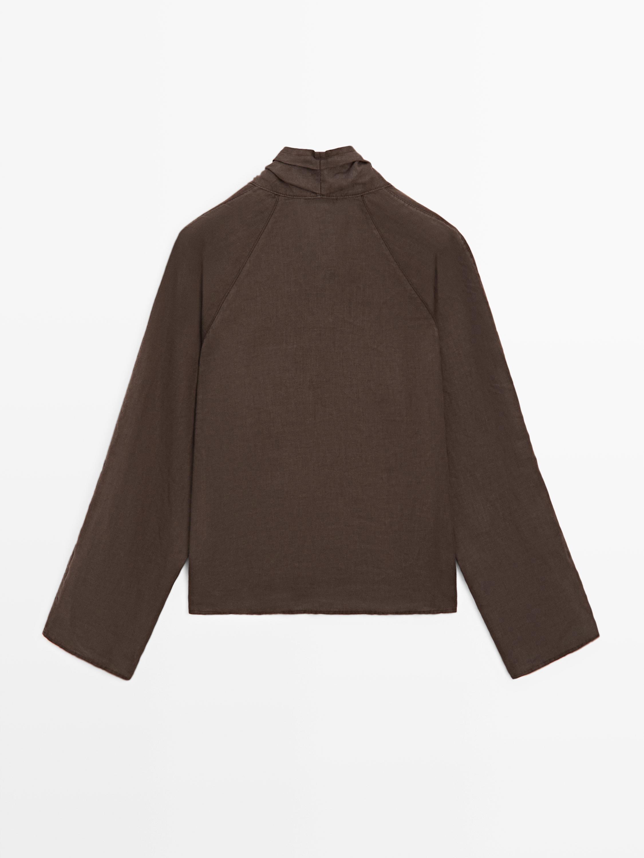 Massimo Dutti Блуза из струящейся льняной ткани внахлест, коричневый