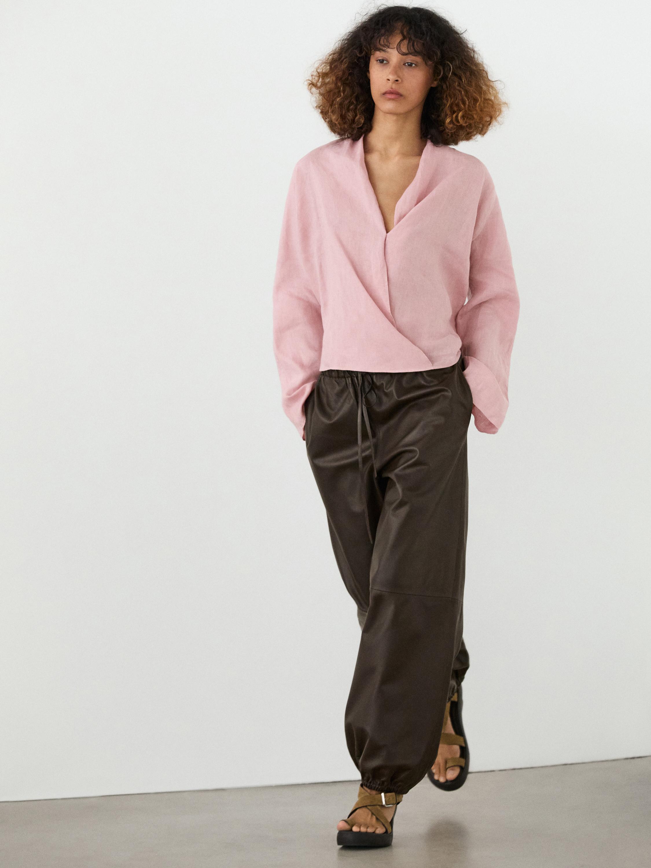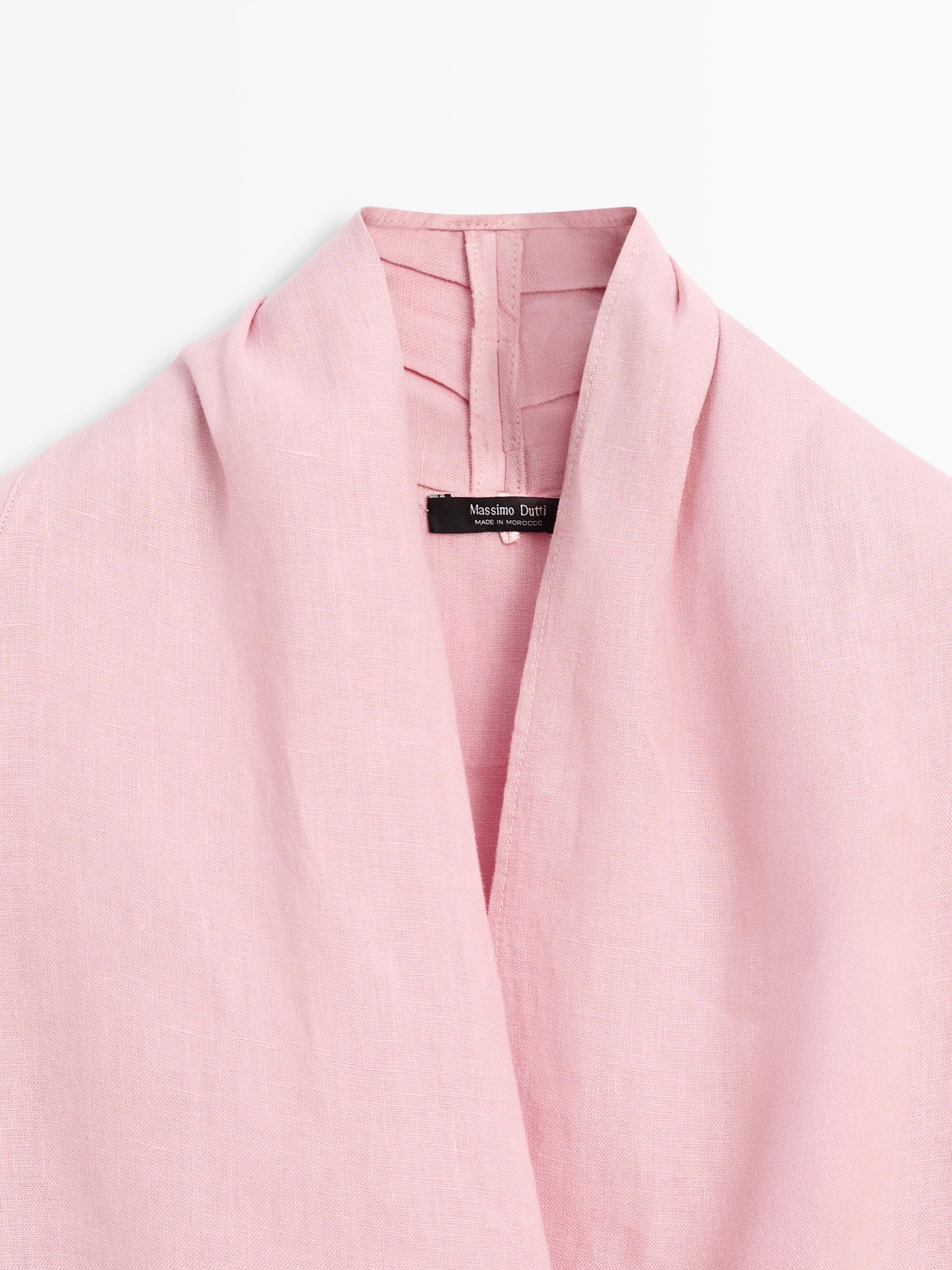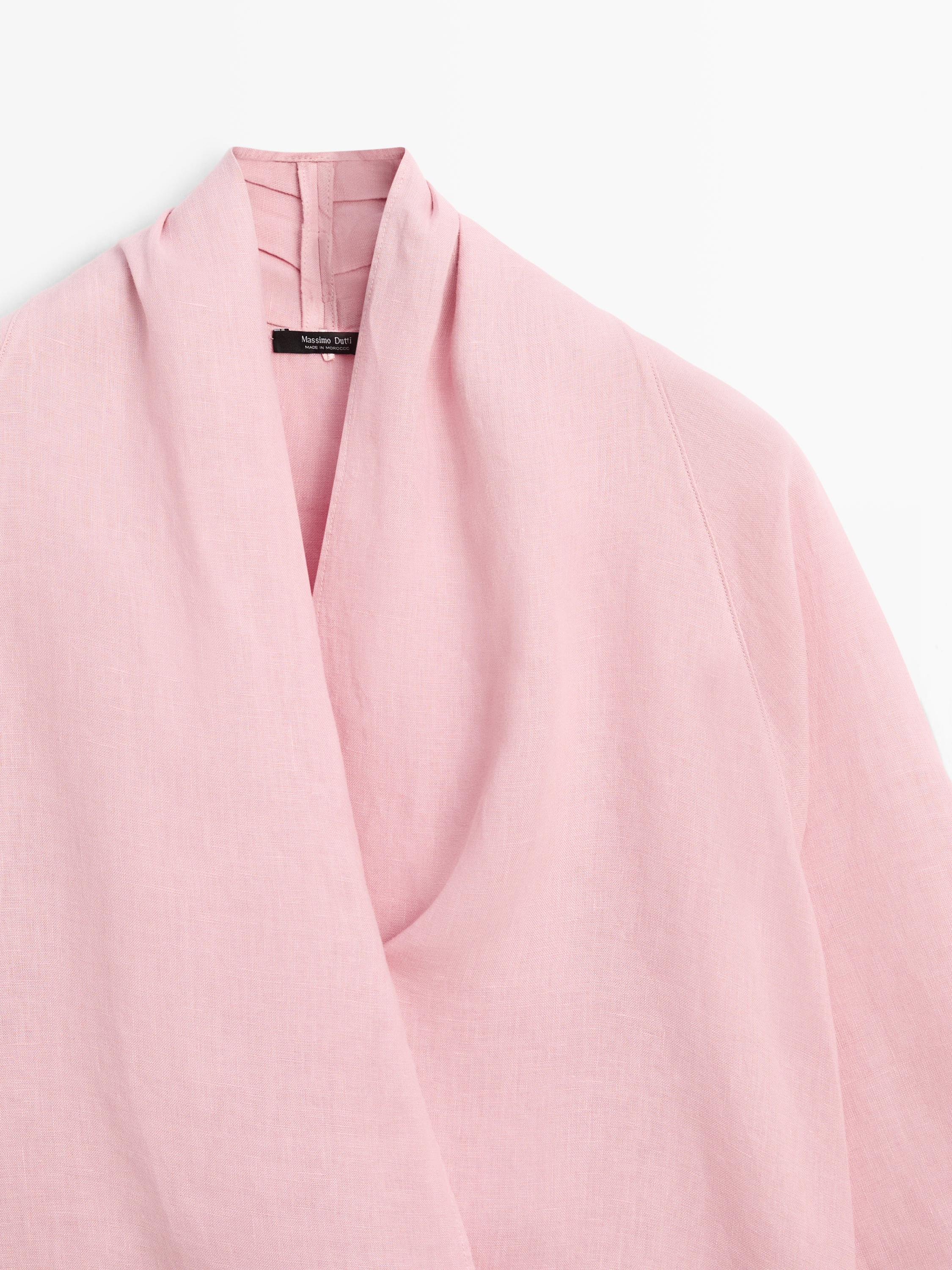 Massimo Dutti Блуза из струящейся льняной ткани внахлест, пастельно-розовый