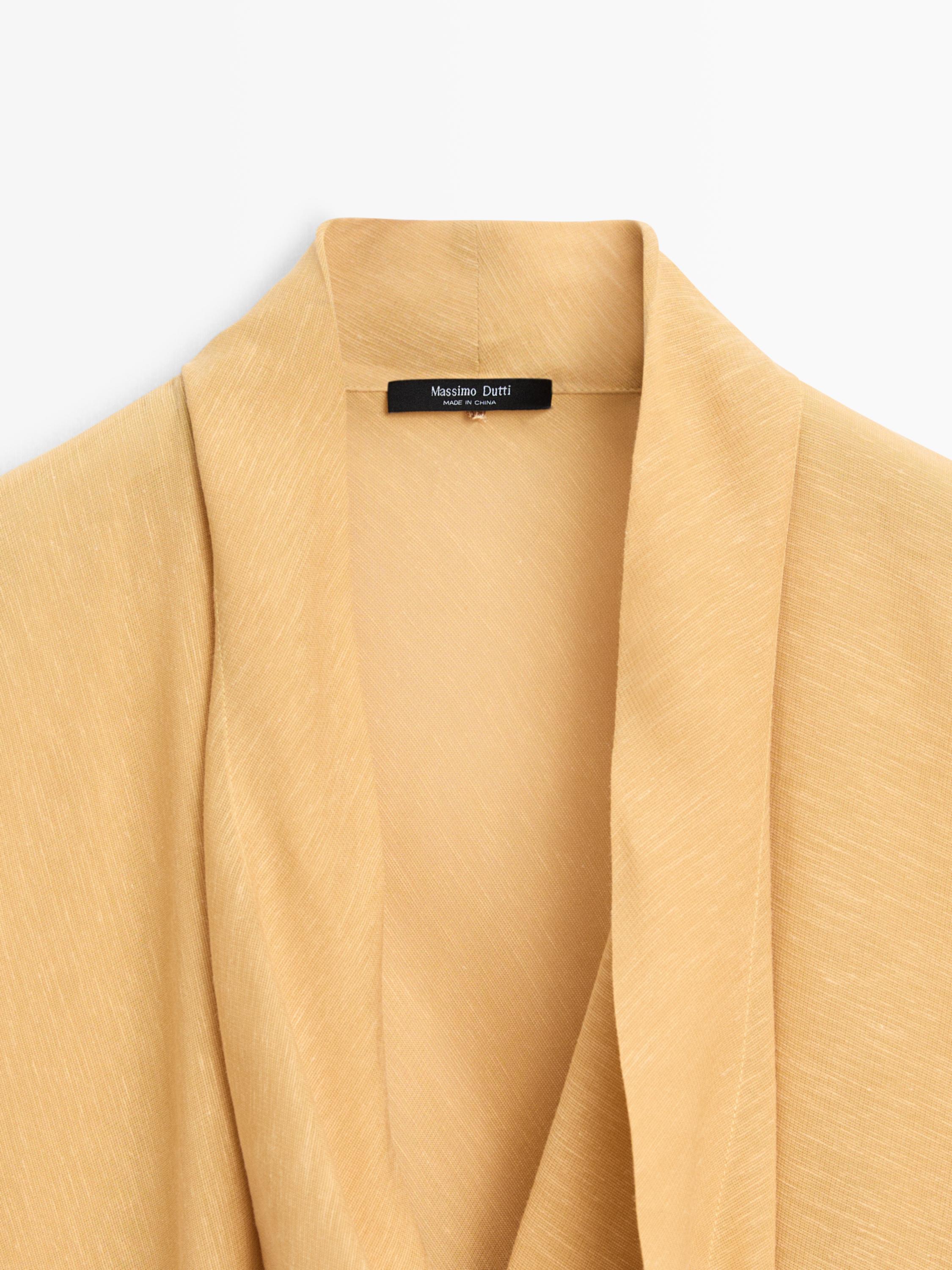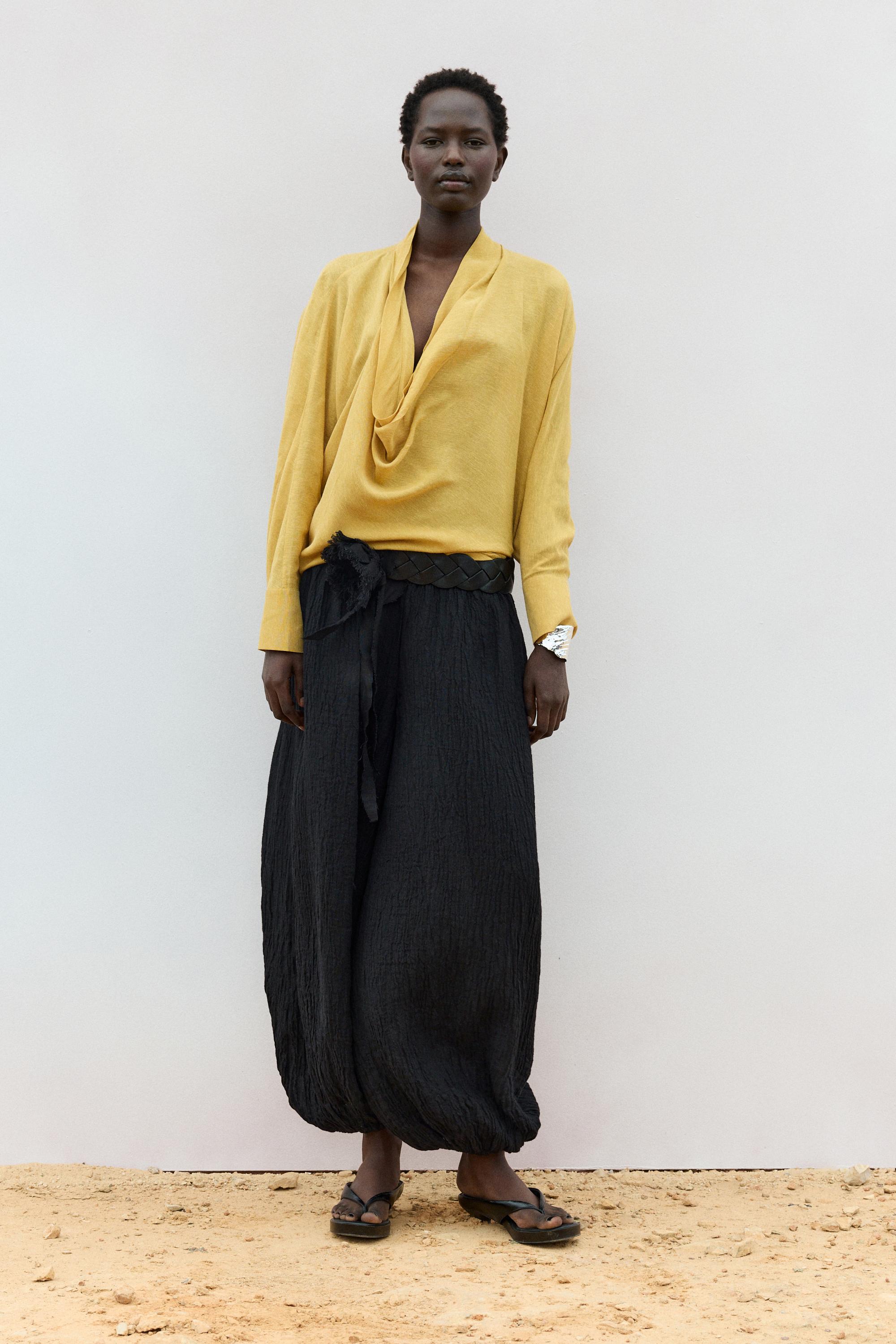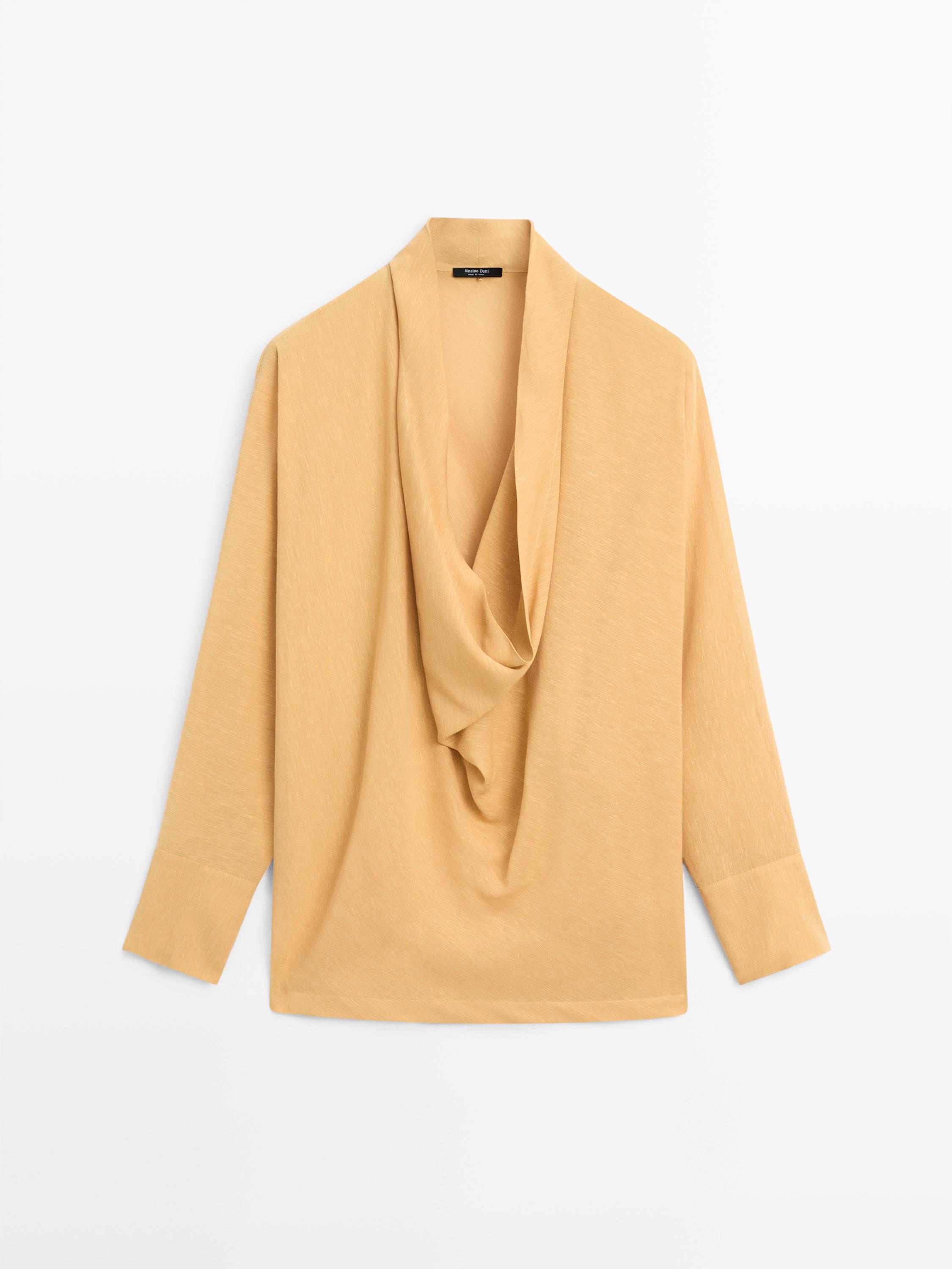 Massimo Dutti Блуза из струящейся ткани с драпированным вырезом, горчично-желтый