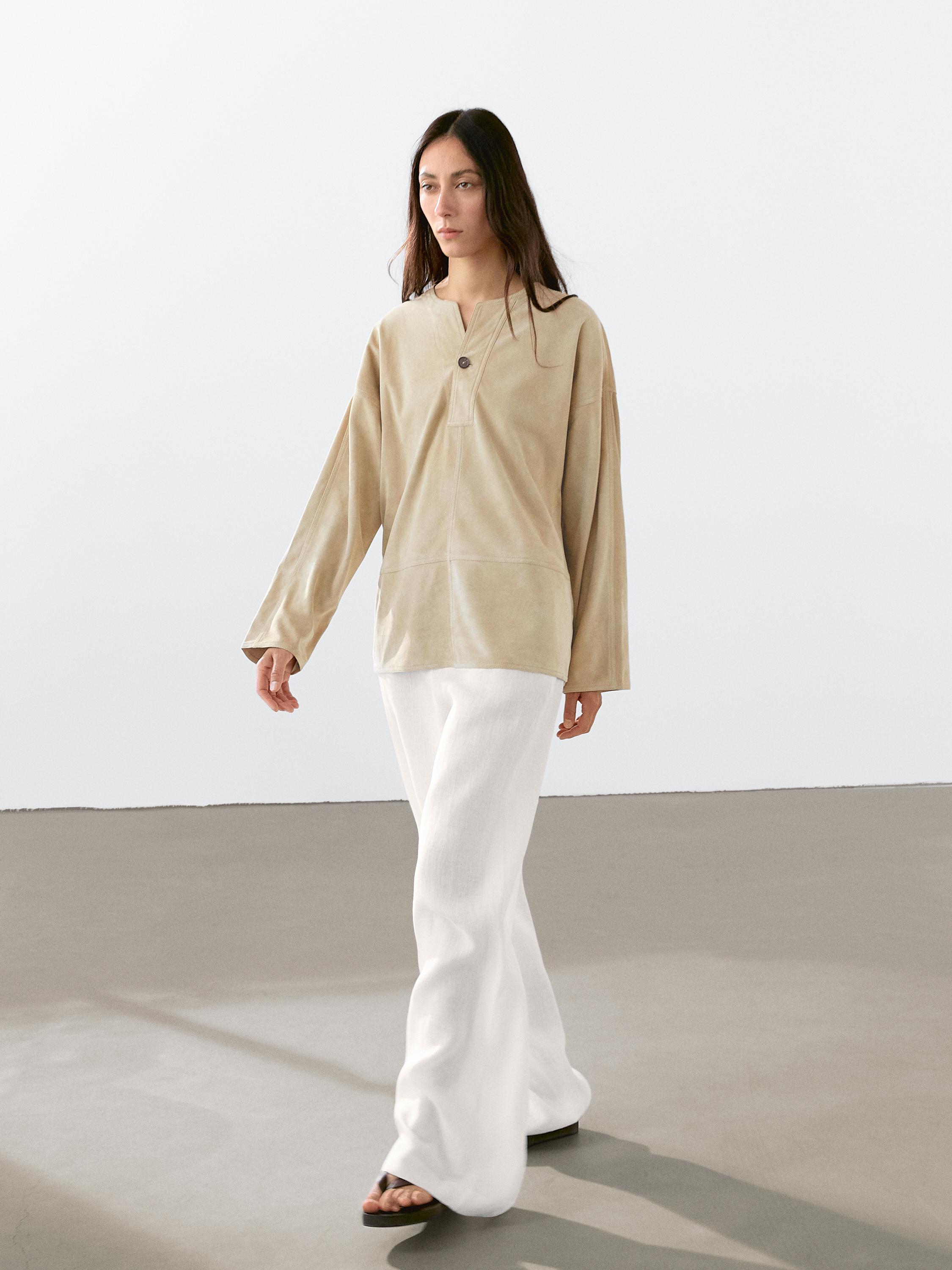 Massimo Dutti Блузка из плотной замши, каменно-серый