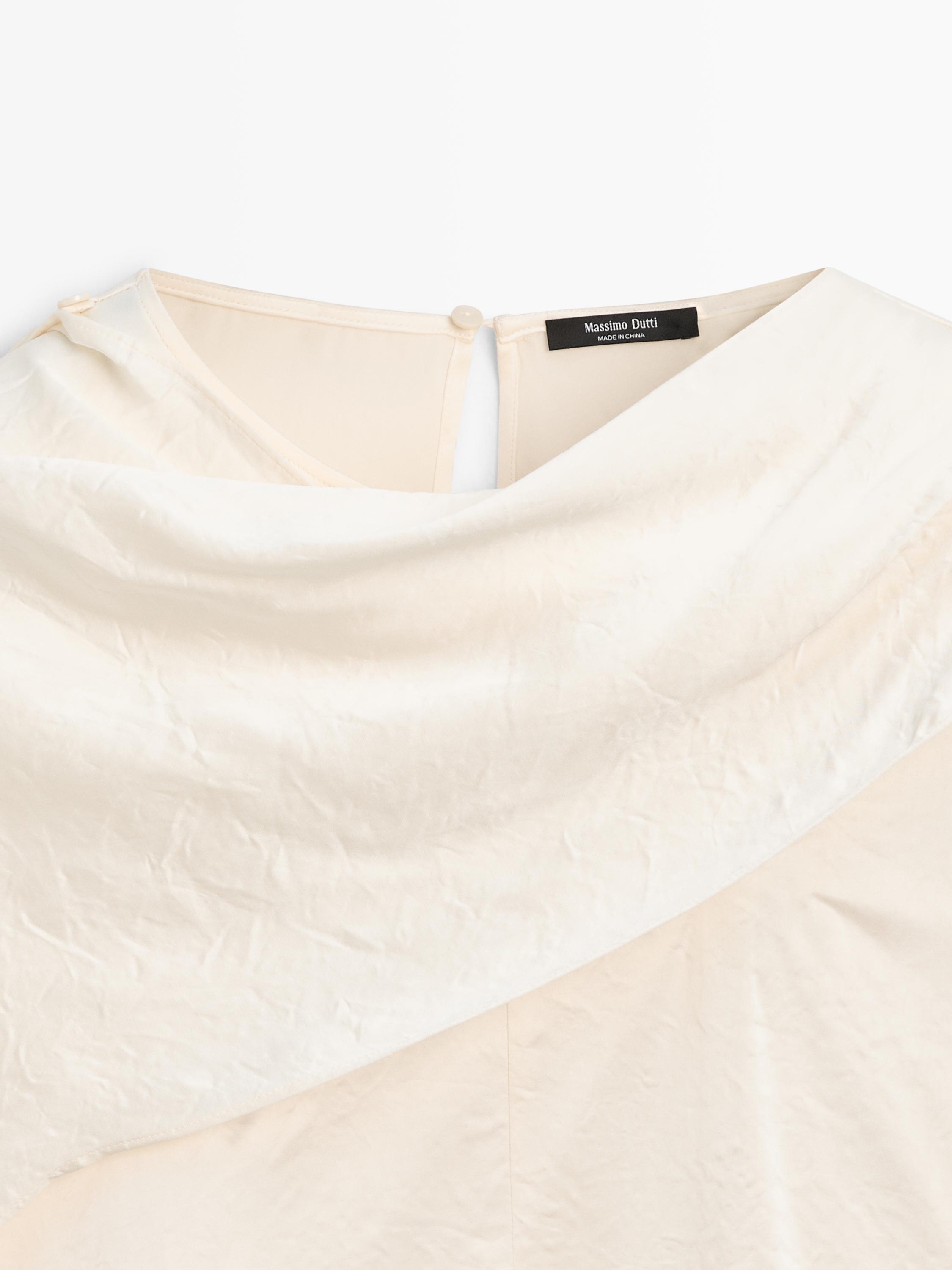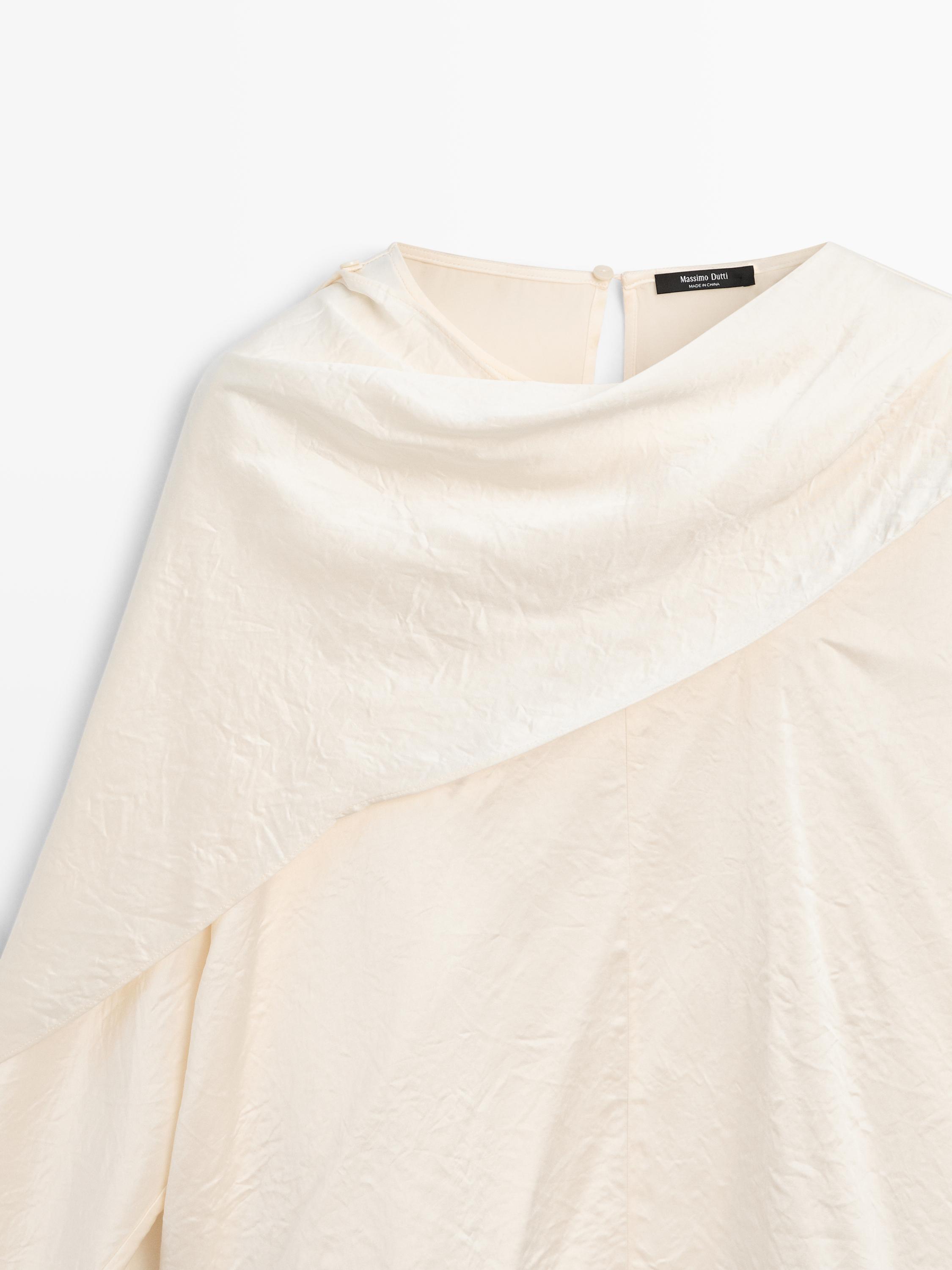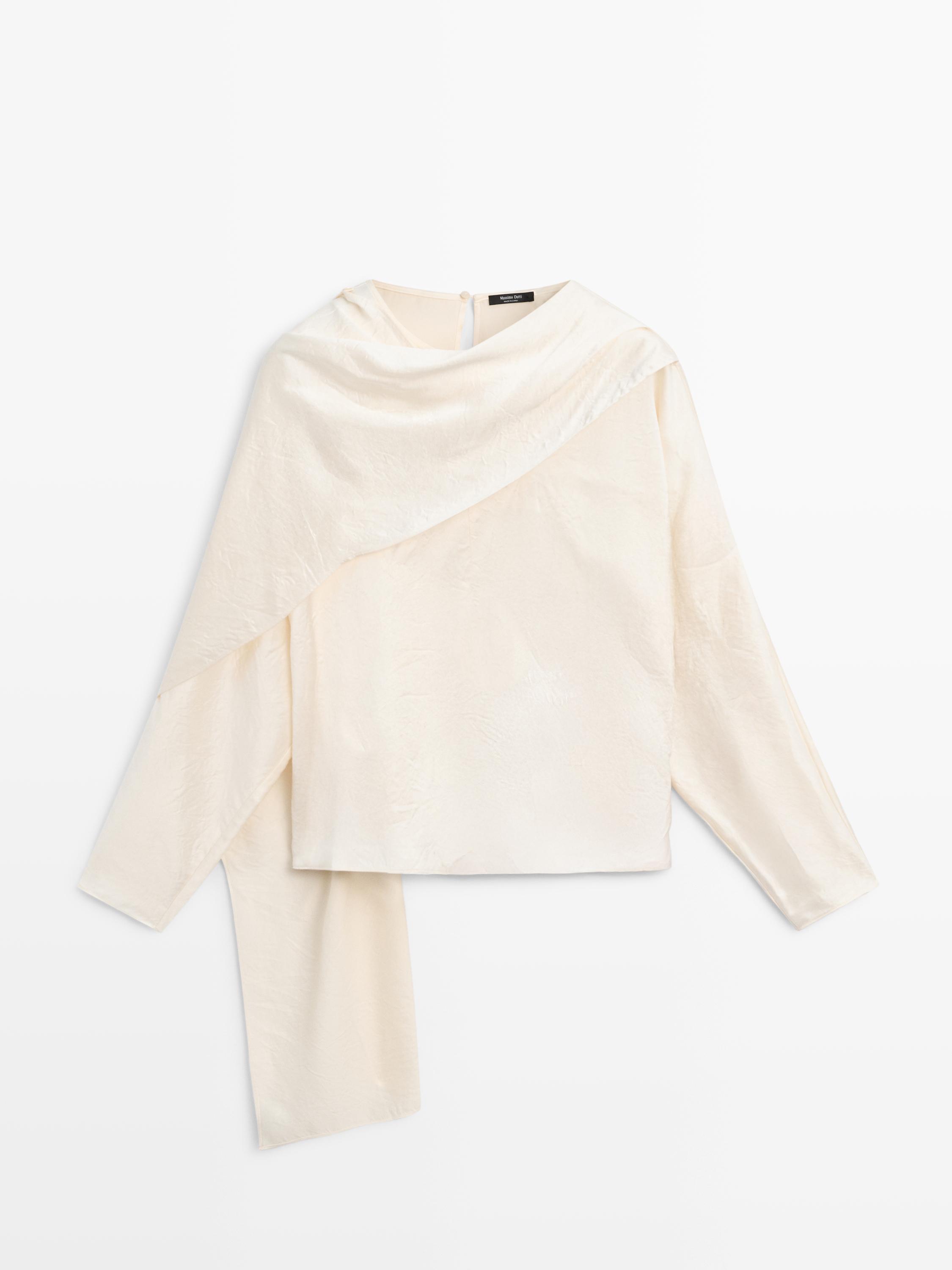 Massimo Dutti Блузка с драпировкой, натуральный/кремовый