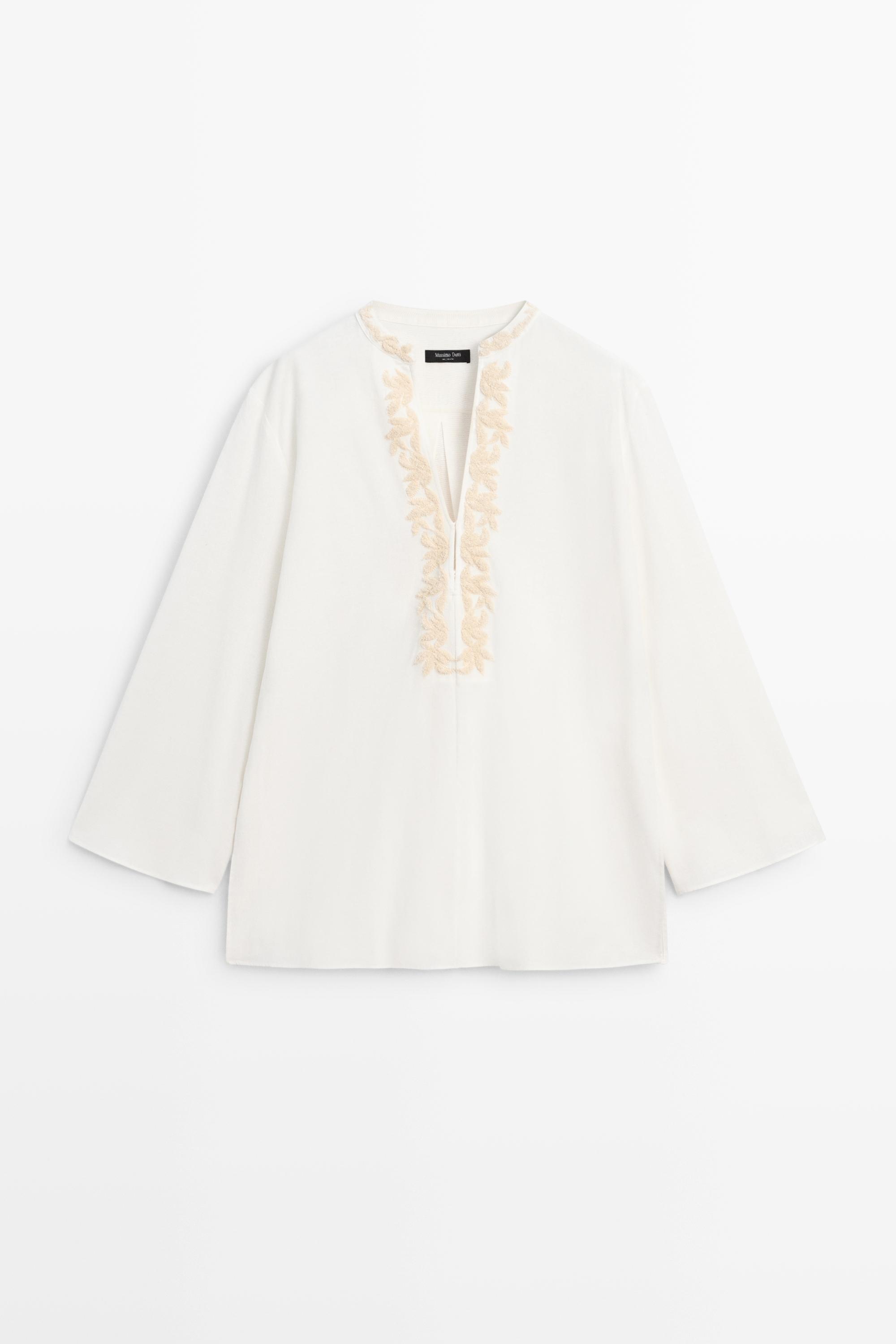 Massimo Dutti блузка с воротником-стойкой, натуральный/кремовый