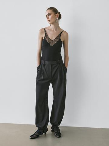 Massimo Dutti Боди с кружевной отделкой - STUDIO, черный