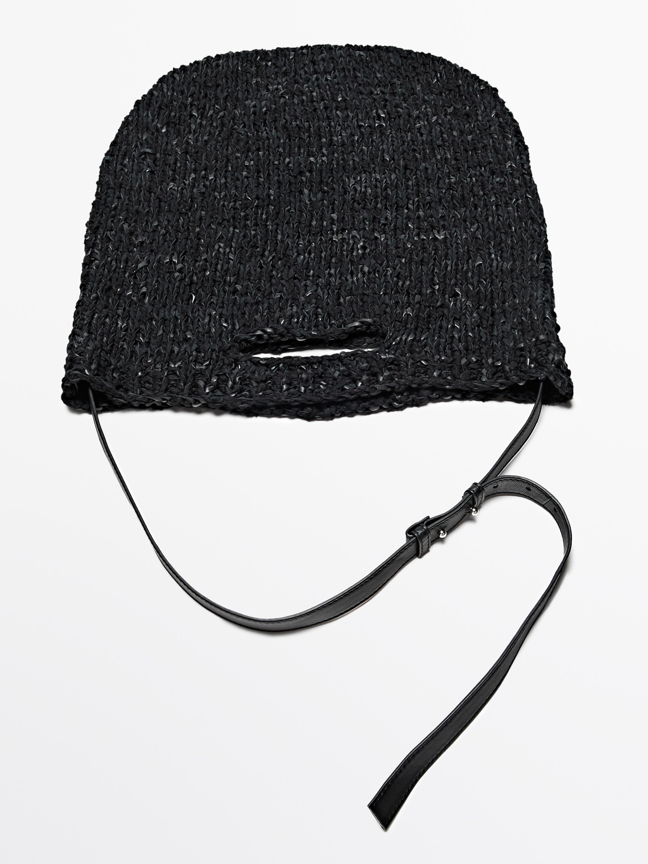 Massimo Dutti Большая кожаная сумка, связанная крючком - Limited Edition, черный