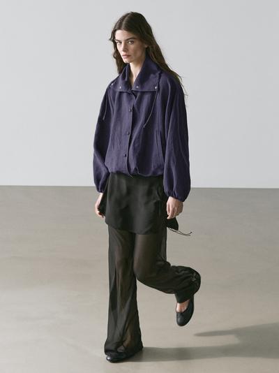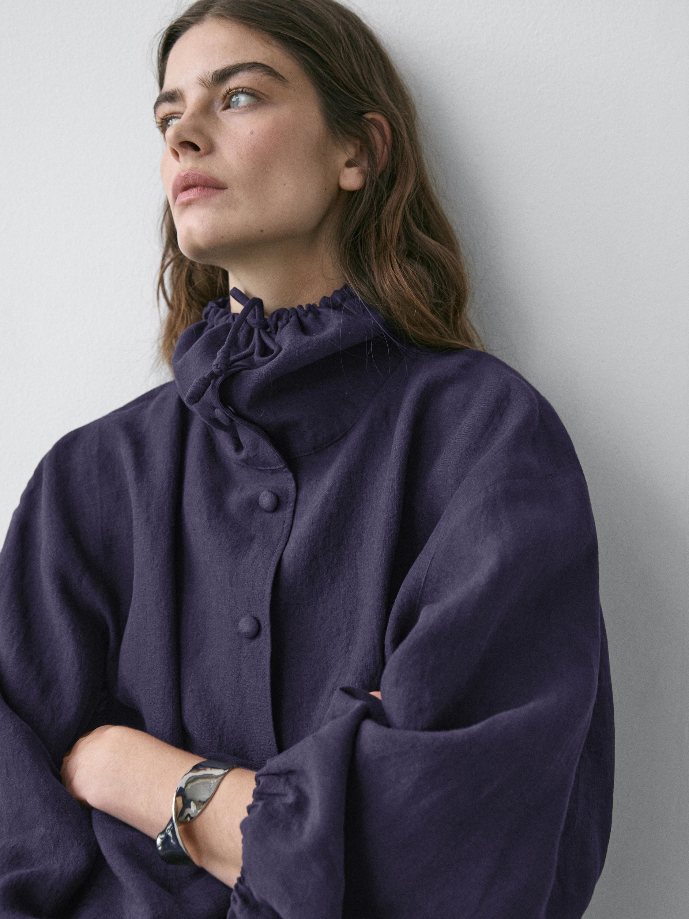 Massimo Dutti Бомбер из 100% льна с воротником, индиго