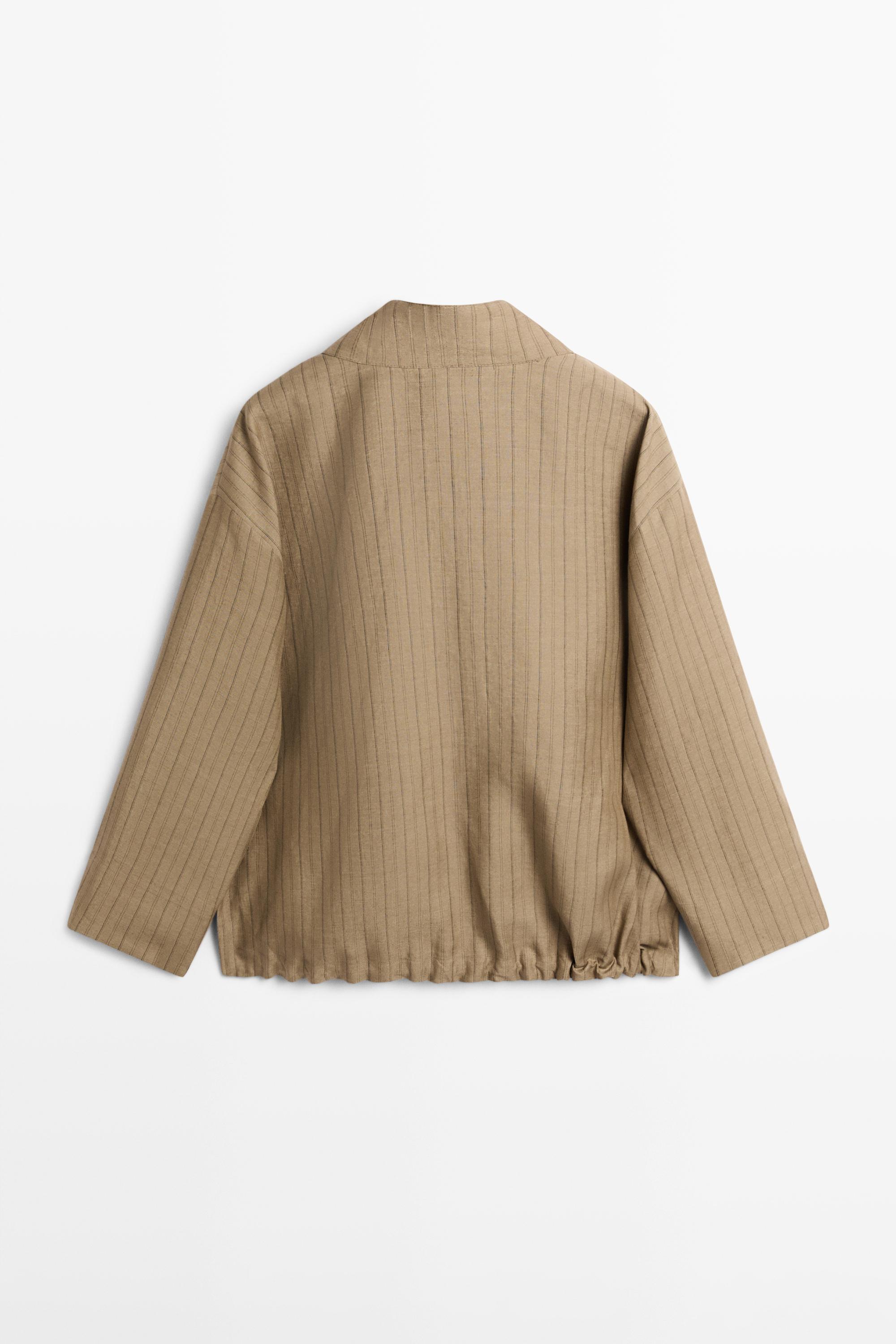 Massimo Dutti Бомбер из льняной смеси в полоску, пастельно-зеленый