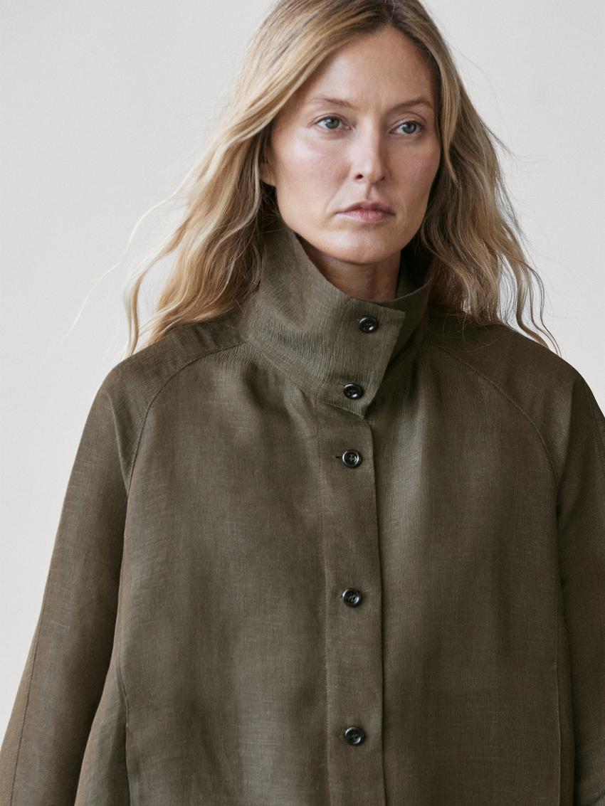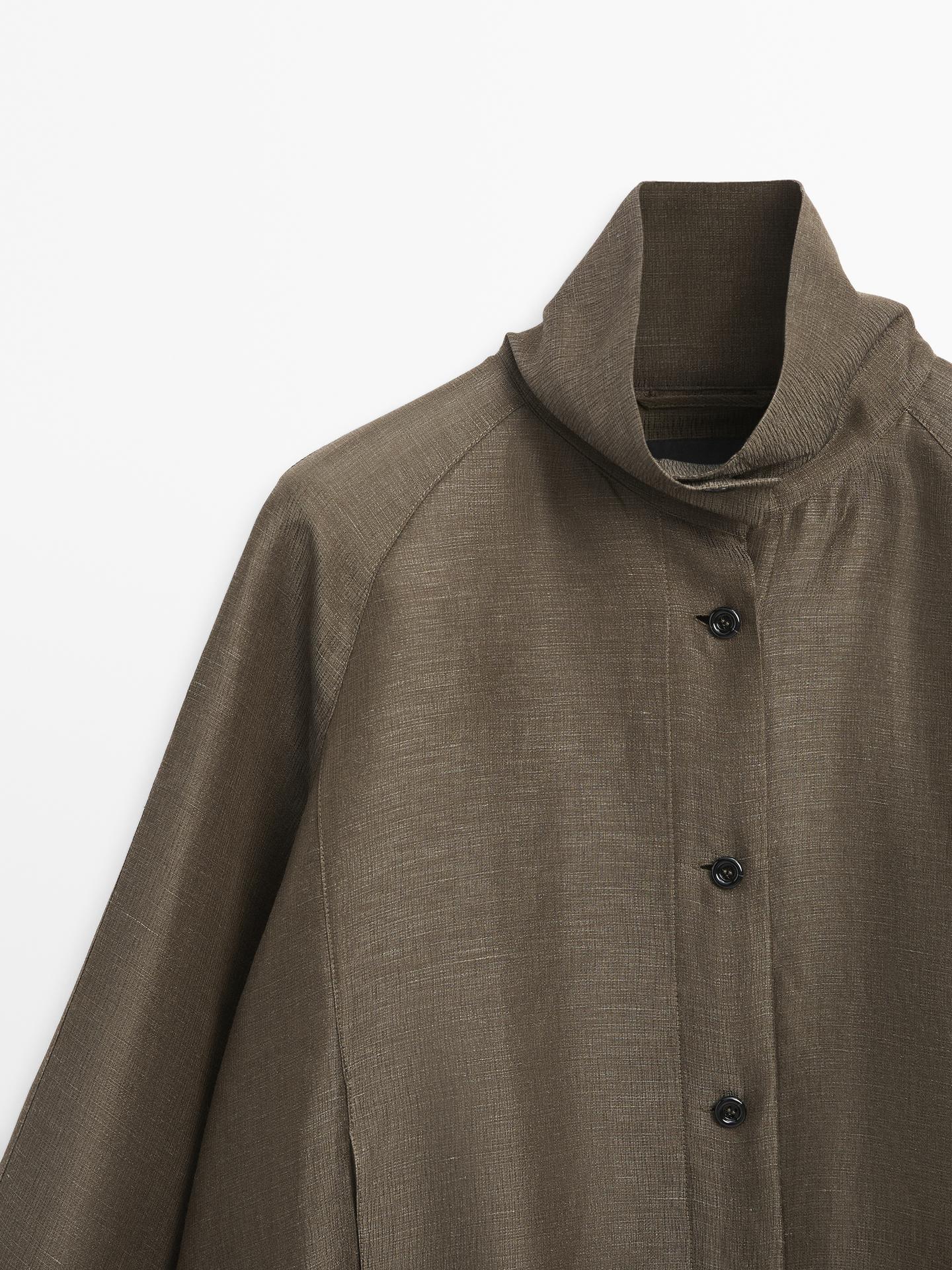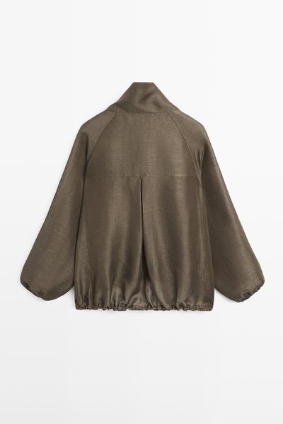 Massimo Dutti Бомбер изо льна и шелка, хаки