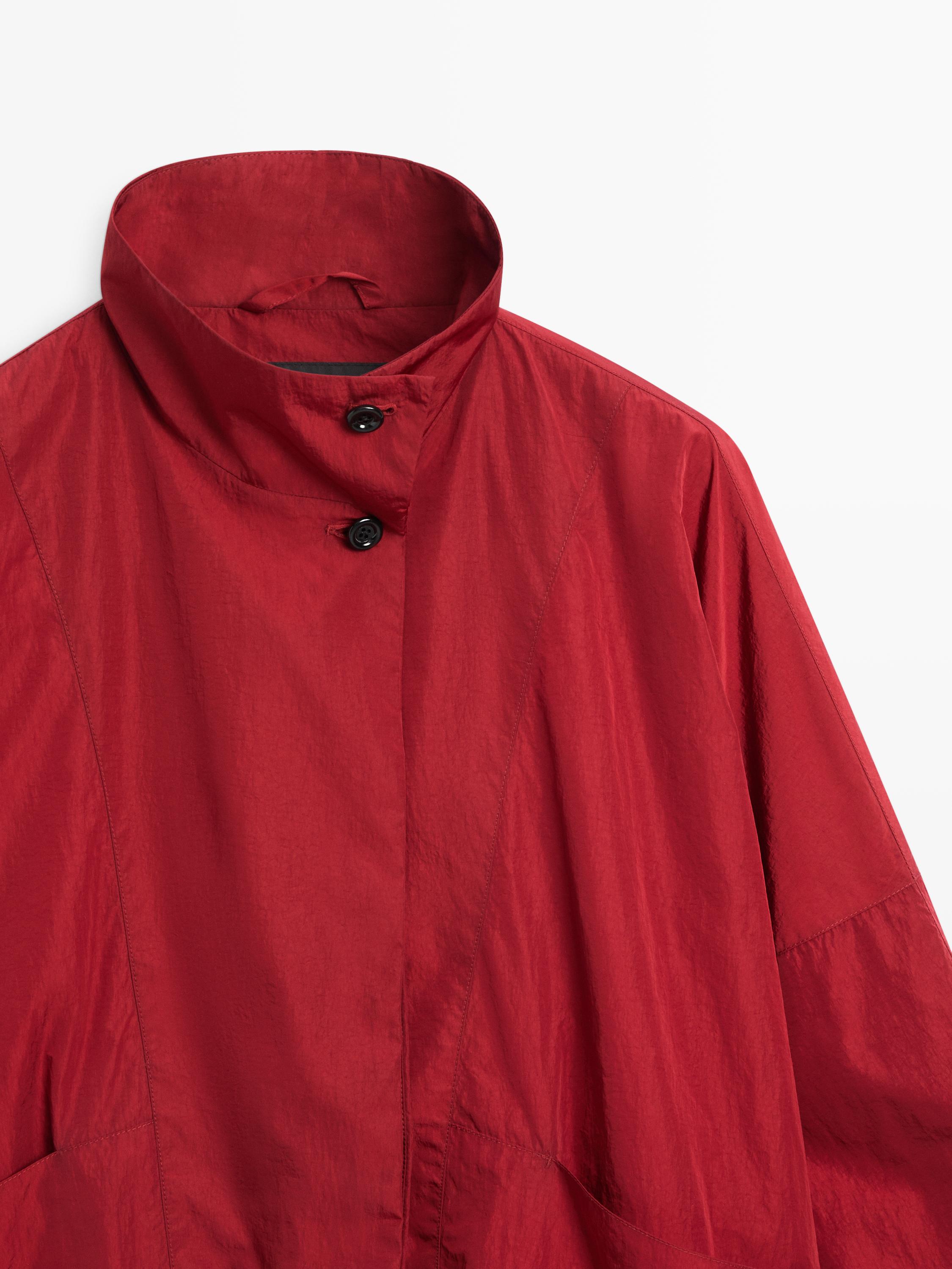 Massimo Dutti Бомбер объемного кроя с высоким воротником, красный