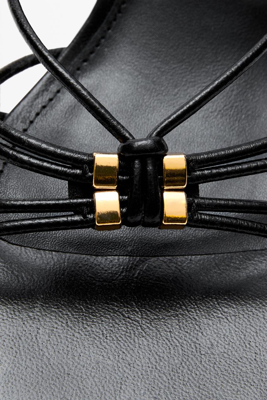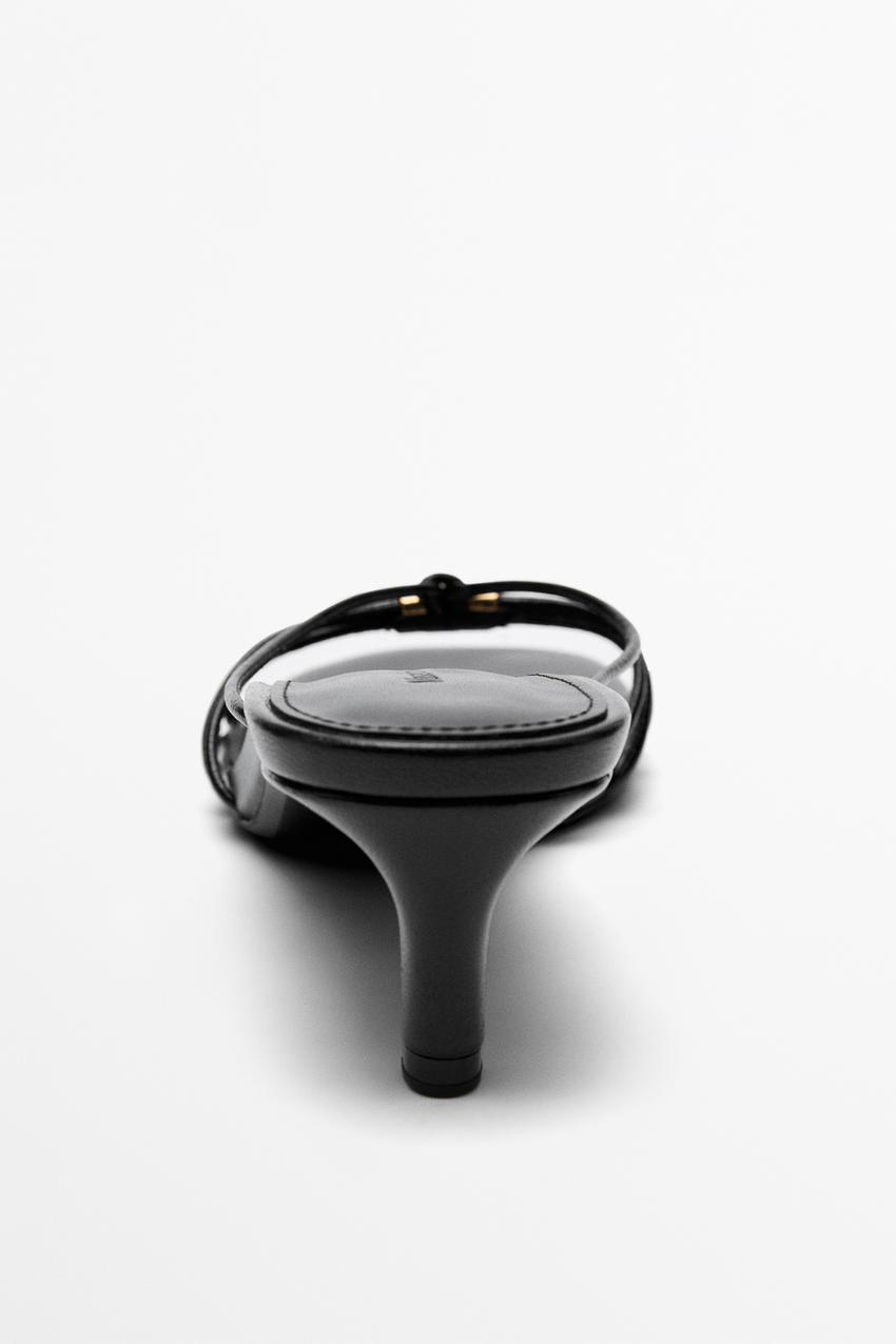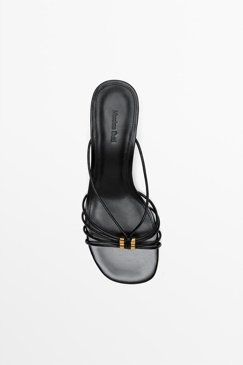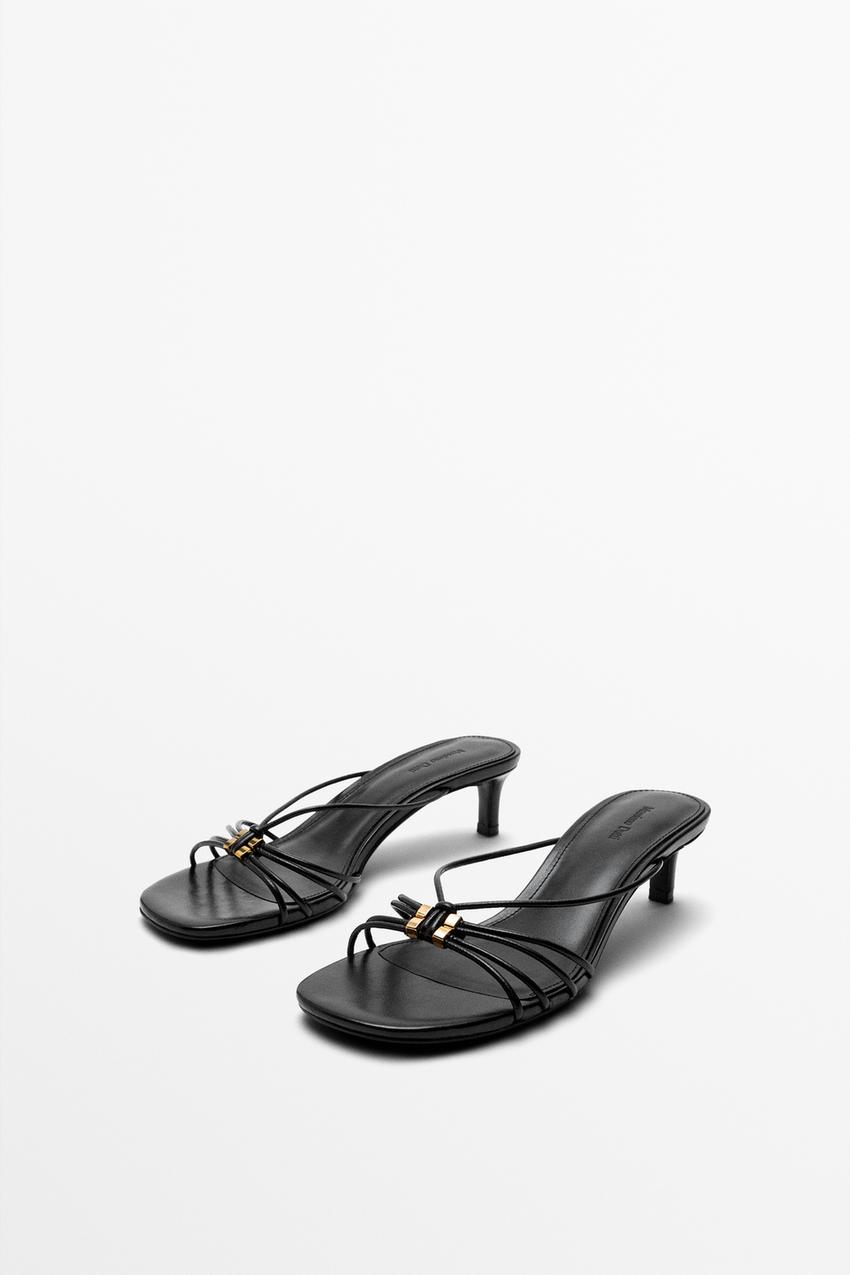 Massimo Dutti Босоножки на каблуке с ремешками и декоративной отделкой, черный