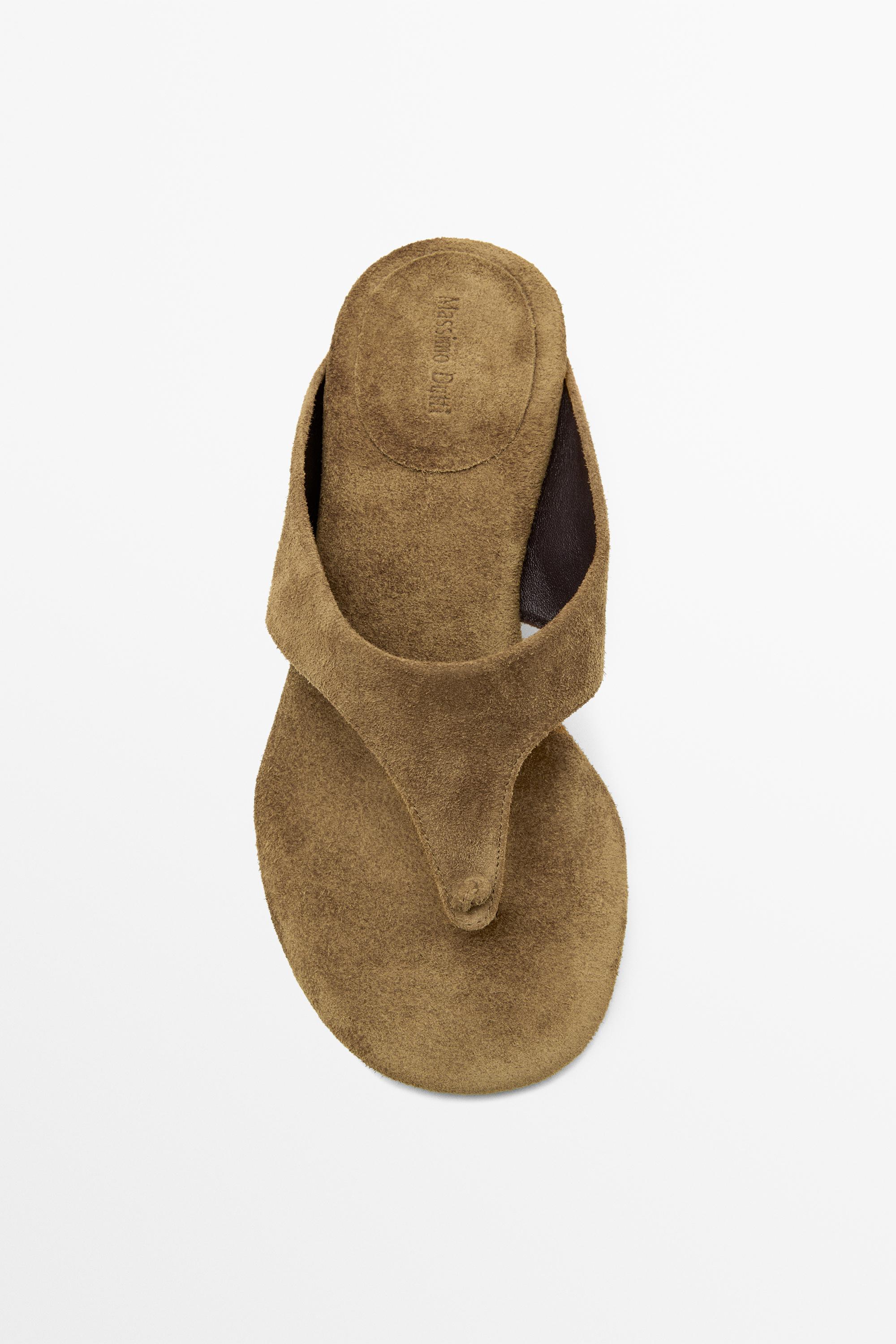Изготовлены из коровьей кожи с замшевой отделкой. Разделитель для пальцев. Массивный деревянный каблук. Сделано в Испании. Деталь в виде узла. Каблук: 4 см.