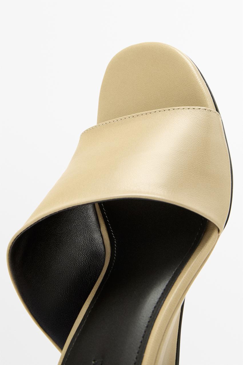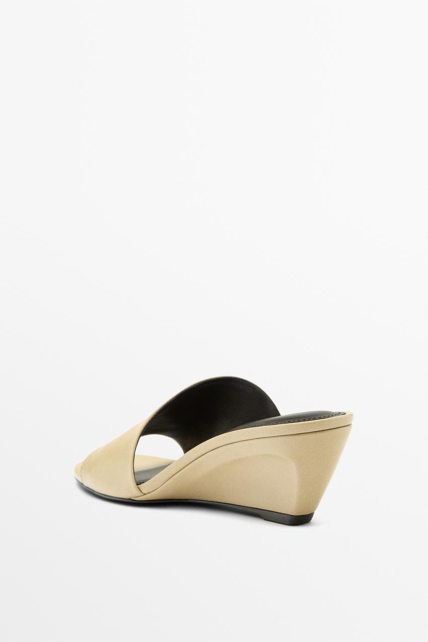 Massimo Dutti Босоножки на танкетке из мягкой кожи, бежевый