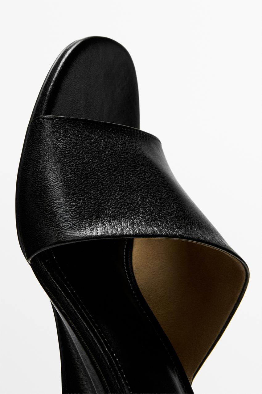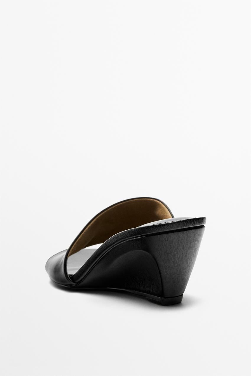 Massimo Dutti Босоножки на танкетке из мягкой кожи, черный