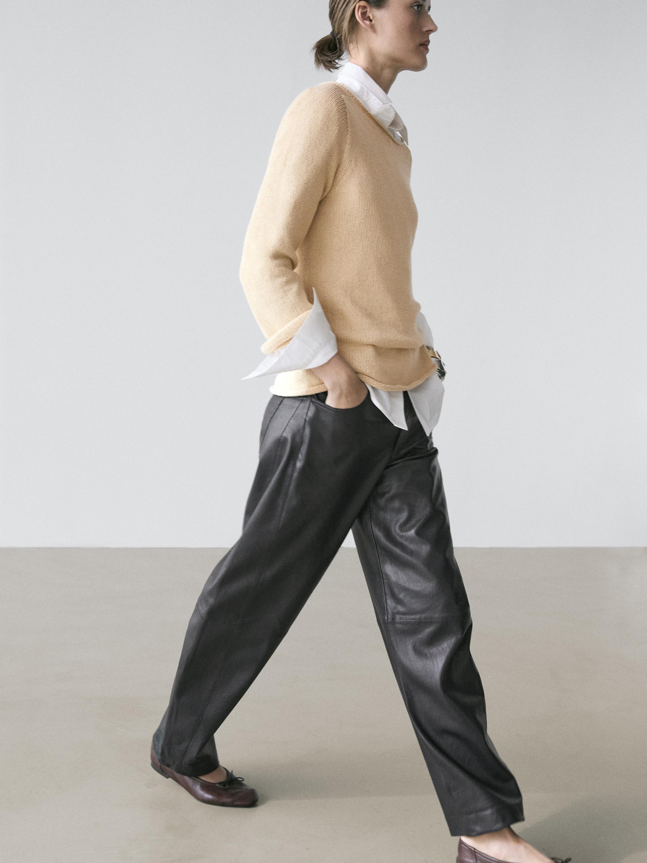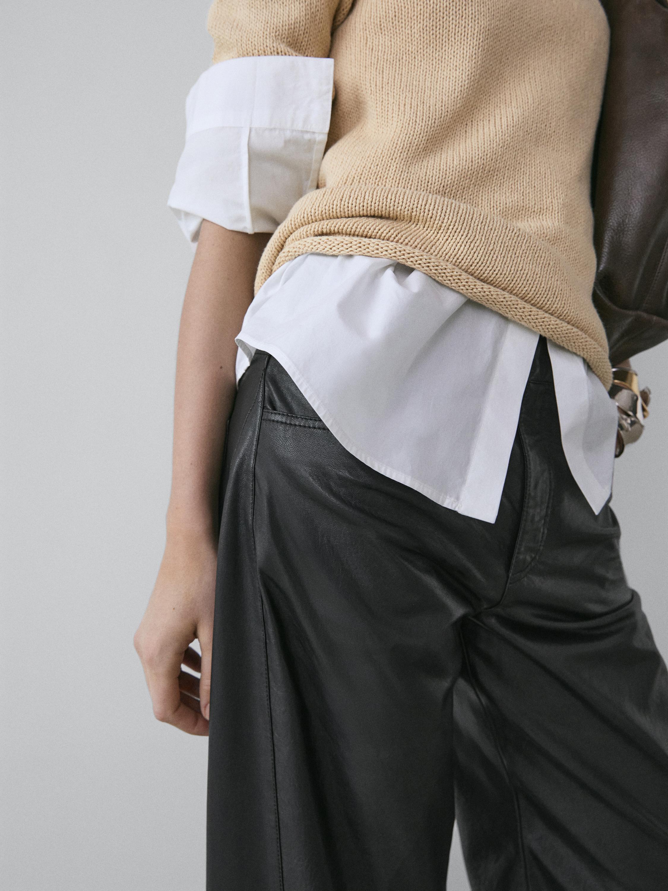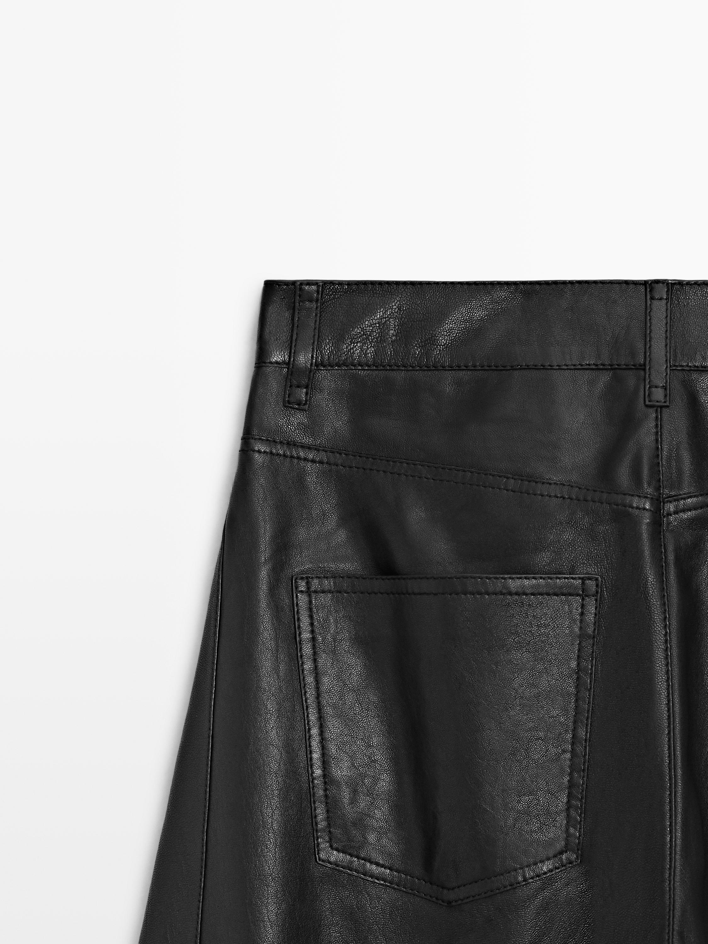 Massimo Dutti Брюки-баллоны из кожи наппа, черный