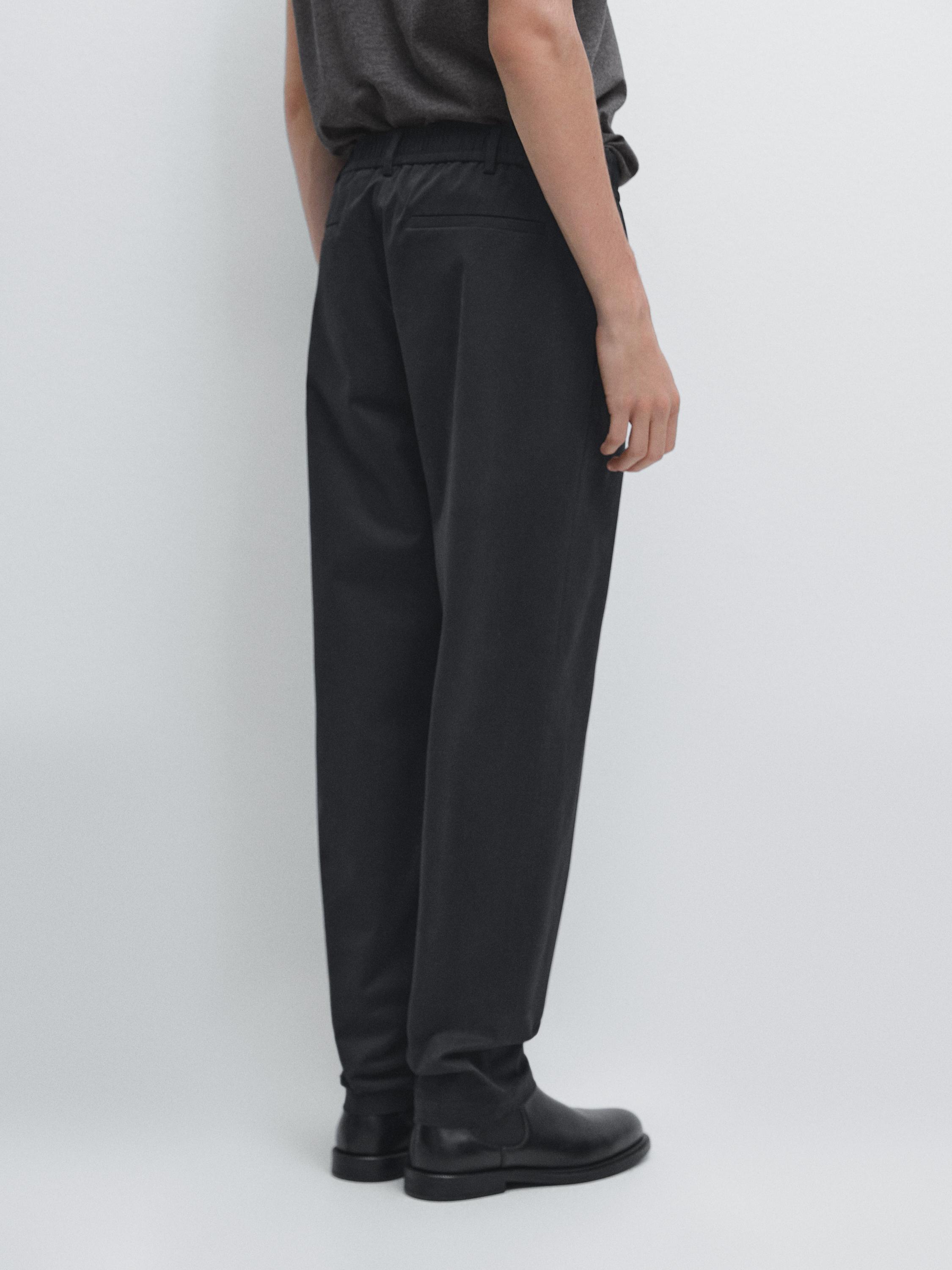 Massimo Dutti Брюки-джоггеры из смесовой хлопковой ткани, темно-синий