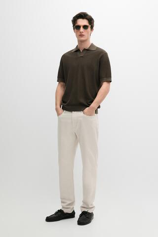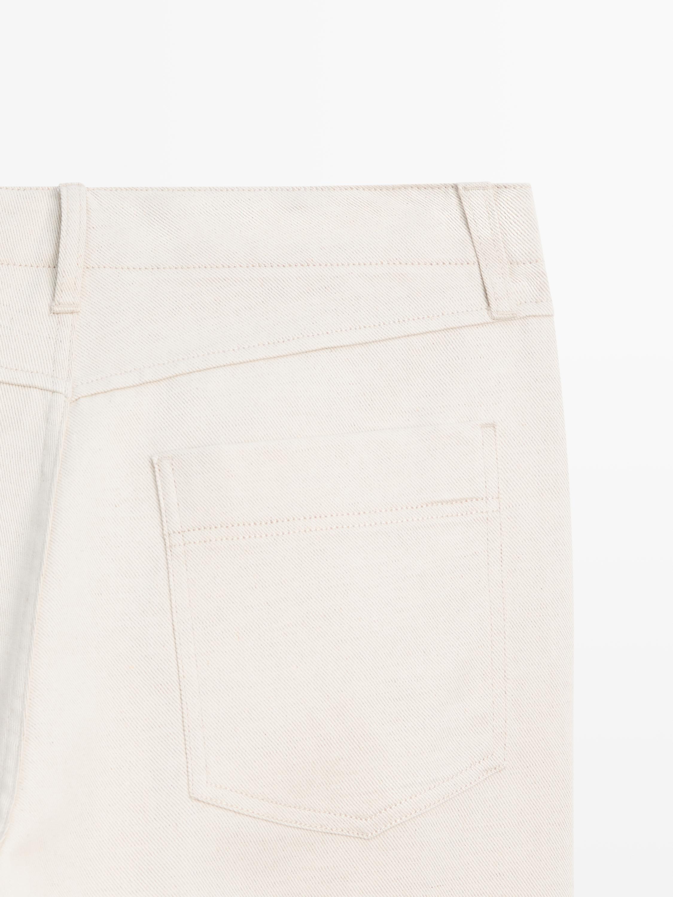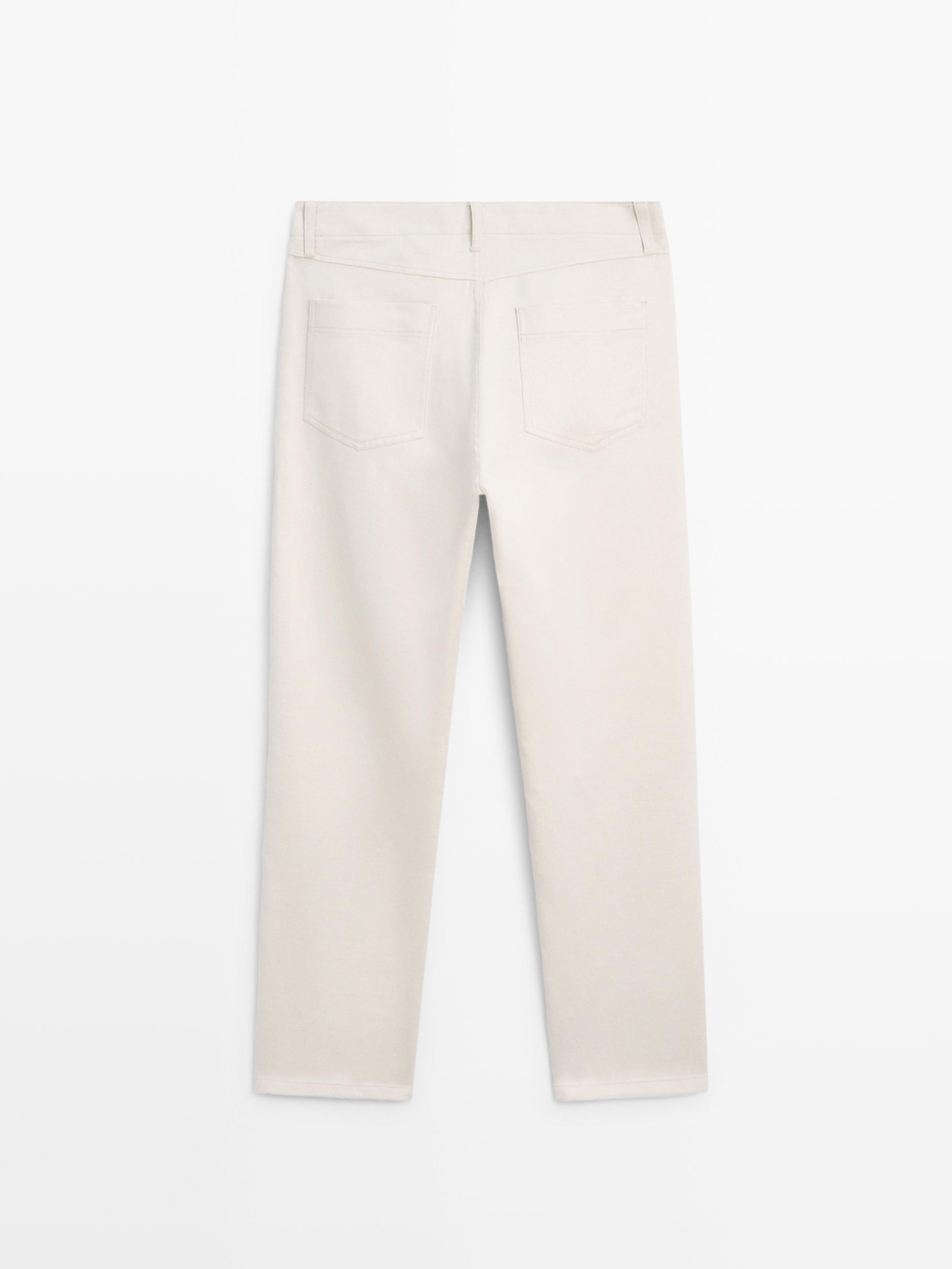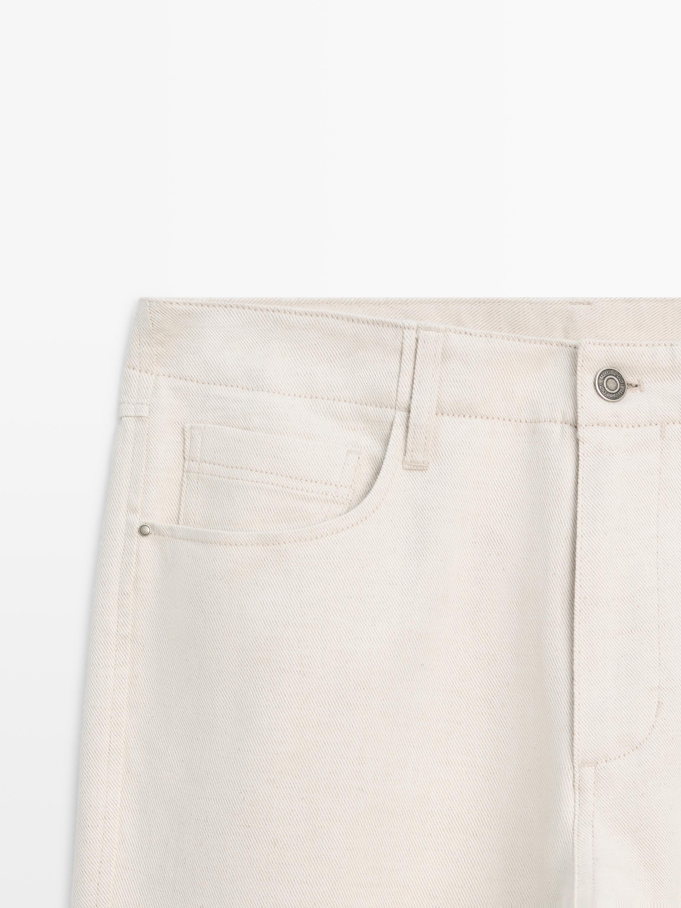 Massimo Dutti Брюки из хлопка и льна с пятью карманами, кремовый